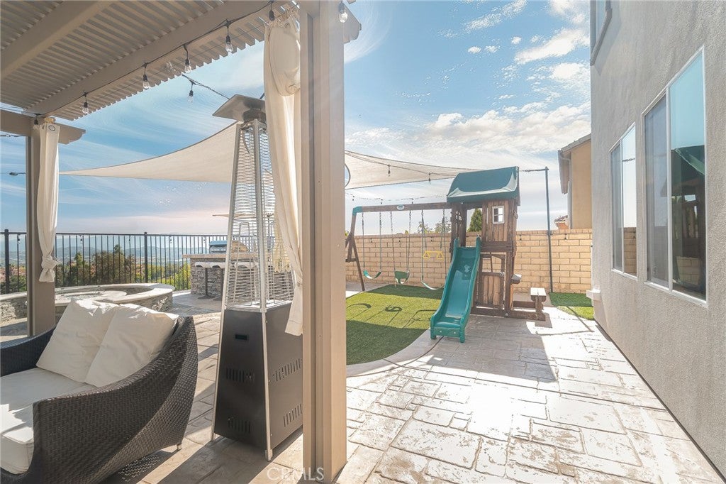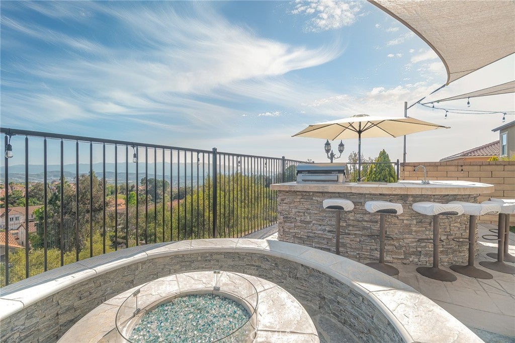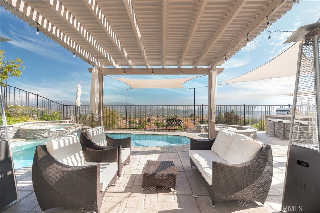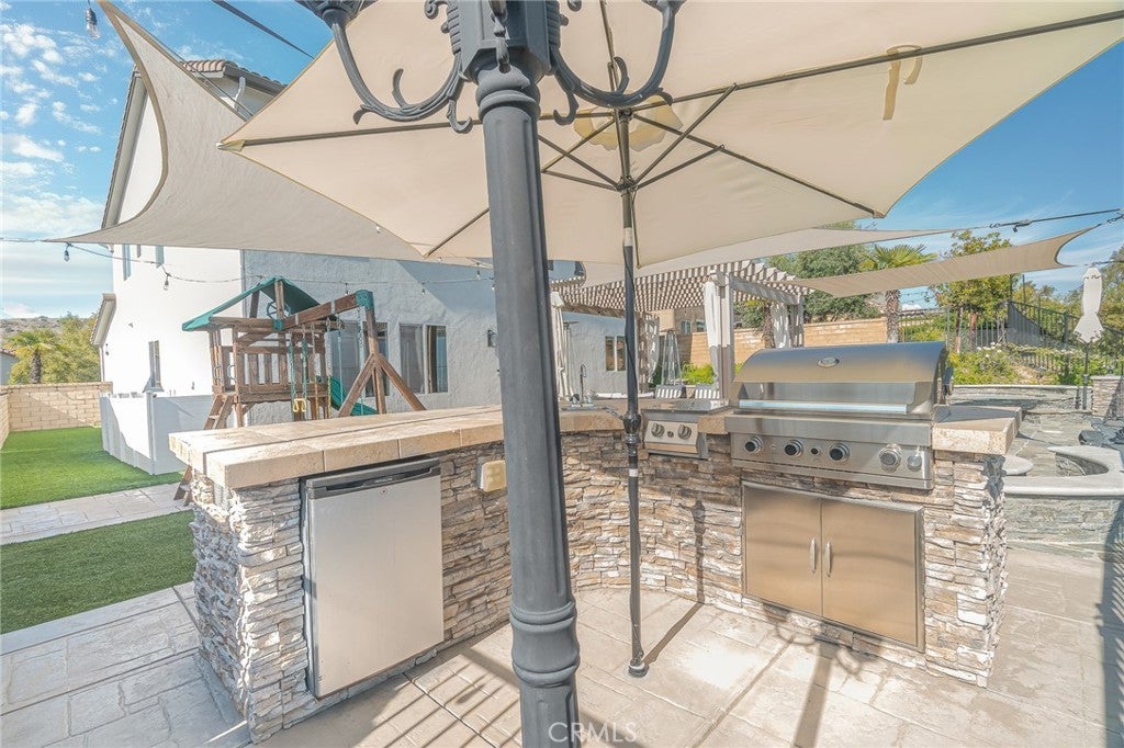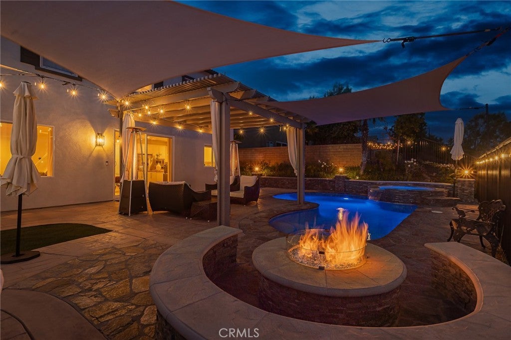 Welcome to 20256 Dorothy Street, a resort-style view home in the heart of Saugus, Santa Clarita. This former model residence has been meticulously upgraded and thoughtfully designed to deliver modern comfort, timeless style, and ultimate functionality. Every corner reflects true pride of ownership, offering a lifestyle that feels like a year-round vacation. Step inside and you’ll be greeted by an open-concept layout flooded with natural light. Expansive windows draw your eyes to the backyard paradise, where a custom pool and spa create the centerpiece of an entertainer’s dream. Cascading waterfalls, color-changing lights, and smartphone-integrated controls bring luxury resort living right to your own home. Multiple seating areas, a fire pit, and an outdoor kitchen with built-in BBQ, sink, and refrigerator make entertaining effortless. The side yard provides versatility, with space for a dog run or play area, and currently includes a removable playground. From this private perch, you’ll even enjoy breathtaking fireworks and sweeping valley views. Inside, the first floor features a desirable guest suite with walk-in closet and full bathroom, perfect for extended stays or multi-generational living. The chef’s kitchen offers granite counters, stainless steel appliances, double ovens, a large island, and abundant cabinetry, plus a walk-in pantry for storage. The dining and living spaces connect seamlessly for gatherings, while the oversized laundry room and partially converted garage—currently a bonus music studio or home office—add flexibility to the floor plan. Upstairs, the primary suite is a retreat of its own, complete with a private seating area, custom walk-in closet, and spa-like bathroom featuring dual vanities, a soaking tub, and walk-in shower. Three additional bedrooms and a full bath complete the level, including one enclosed loft now serving as a fifth bedroom. Skylights and upgrades throughout add warmth and charm. Additional highlights include 9-foot ceilings, dual-zone AC, paid-off solar, plantation shutters, EV charger, built-in security system with cameras, and a finished attic with pull-down ladder. Set on a rare 9,684 sq ft lot with no front or rear neighbors, the home enjoys privacy, natural light from sunrise to sunset, and easy access to the growing Skyline Ranch Plaza with dining, shopping, and more. Turnkey and move-in ready, this property offers more than just a home—it’s a lifestyle.