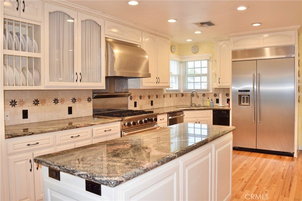 Introducing 2024 N. Kenwood Street, this well maintained home is located on a tree-lined street in the desirable city of Burbank. Step inside this 3-bedroom, 2.5 bath home to discover an open and spacious floor plan with newer gleaming hardwood floors that flow seamlessly throughout the living spaces. The kitchen boasts high-end stainless steel appliances, including a 6-burner Viking range and a KitchenAid 48” refrigerator, perfect for the home chef. The family room is a perfect gathering space, complete with built-in cabinets for storage and a welcoming fireplace. Enhancing the entertainment area, a built-in wet bar with a new wine refrigerator awaits your favorite beverages. It’s primary bedroom offers a peaceful retreat with an en-suite bathroom and a cozy fireplace. Two additional bedrooms provide flexibility for a home office or guest rooms. Ceiling fans in the bedrooms provide added comfort, new carpet and mirrored closet doors enhance the space. Step outside through the sliding doors to the private oasis, where you'll find a flower garden and a covered patio, ideal for enjoying the outdoors. Conveniently located near parks, schools, shopping, and dining, this home offers the perfect blend of comfort and convenience. Don't miss the opportunity to make this lovely Burbank residence your own!