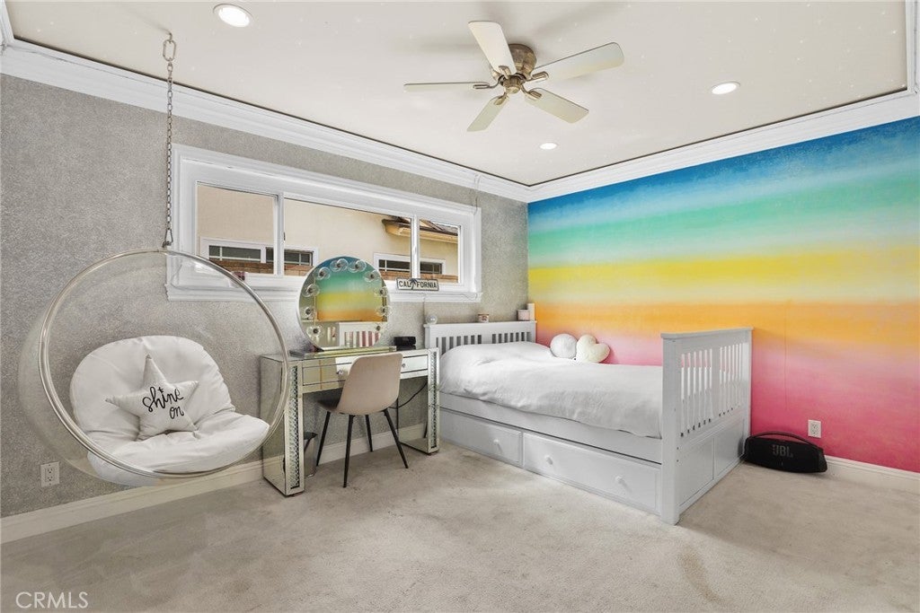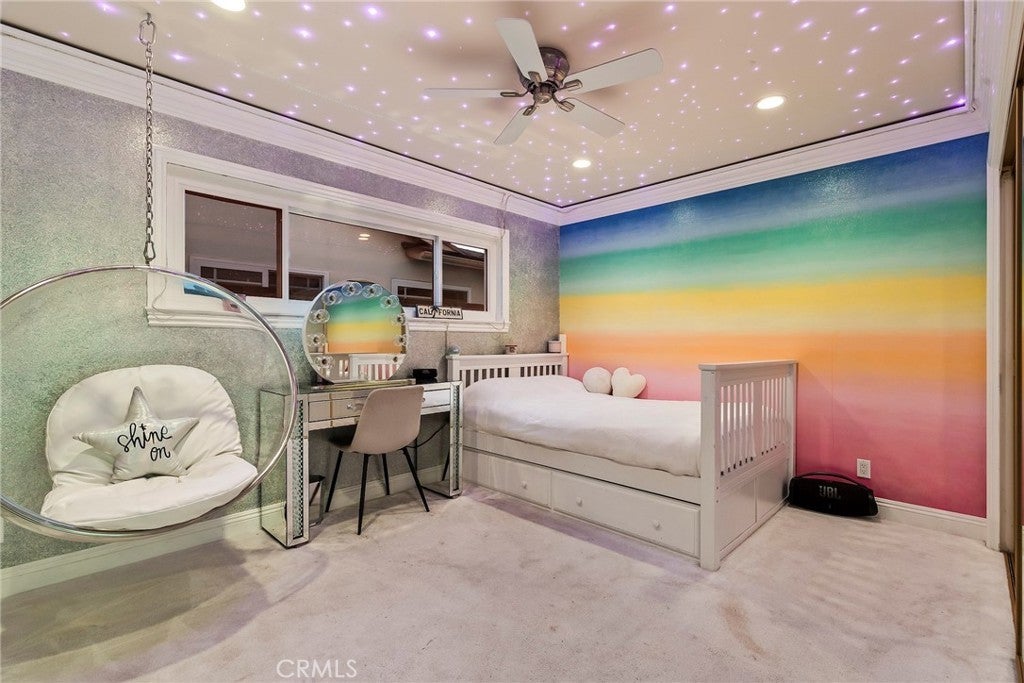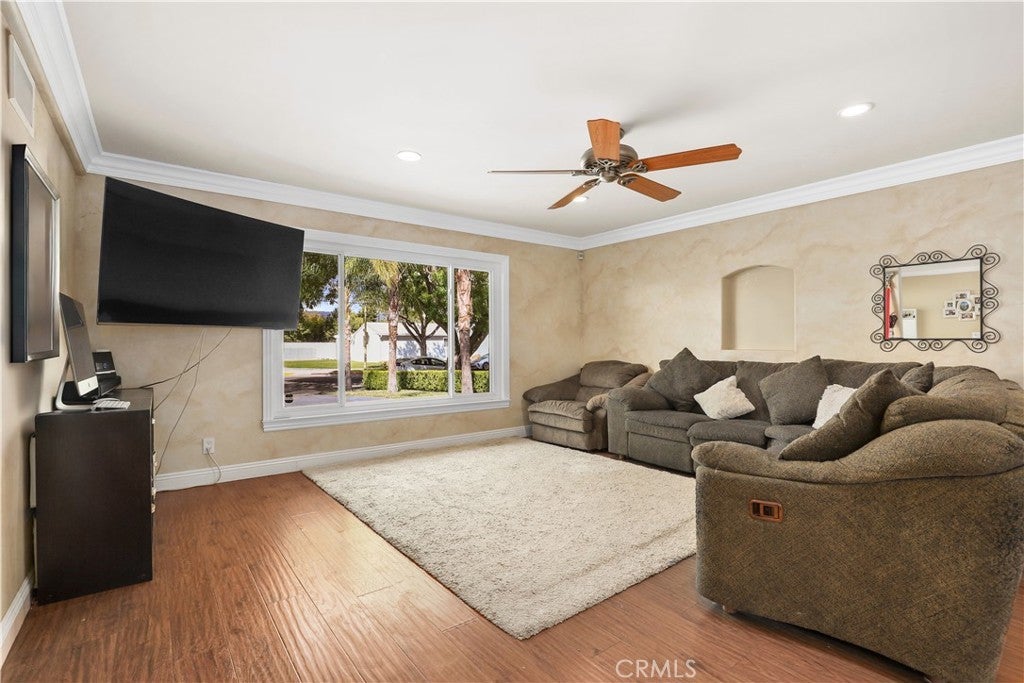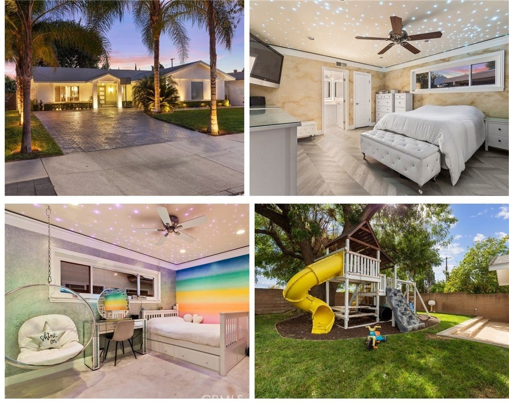 Welcome to this beautifully reinvented 4 bedroom, 3 bathroom home in the heart of West Hills. Featuring 1,918 sq ft of living space on a generous 8,906 sq ft lot of immaculate, taken care of landscaping, this residence has been thoughtfully updated from top to bottom with modern finishes and quality upgrades. The open floor plan offers a spacious living room, formal dining area, built-in kitchen dining nook, and a convenient laundry room off the kitchen. The oversized 2-car garage and large driveway provide parking for up to 6 cars along with abundant storage, while the expansive entertainer’s backyard is perfect for gatherings and outdoor living. Recent improvements include all new windows except one (2020), a new roof with radiant heat shield sheathing (2020), smooth stucco finish (2020), remodeled dining/fireplace room (2020), new HVAC ducting (2022), a fully remodeled primary bath and new primary flooring (2024), enlarged HVAC returns for higher efficiency (2024), two additional remodeled bathrooms (2025), and a new electrical panel (2025). Excellent storage inside and outside the home includes multiple deep closets and a waterproof outdoor built-in storage room. Located on a quiet street at a stop sign, this home enjoys the privacy and low traffic of a cul-de-sac without being on one. Designer details include fiber optic star light ceilings in three bedrooms, crown molding throughout, solid-core doors, and instant-on hot water in the bathrooms. With every detail carefully considered and updated, this move-in ready home offers the perfect combination of style, comfort, and functionality.