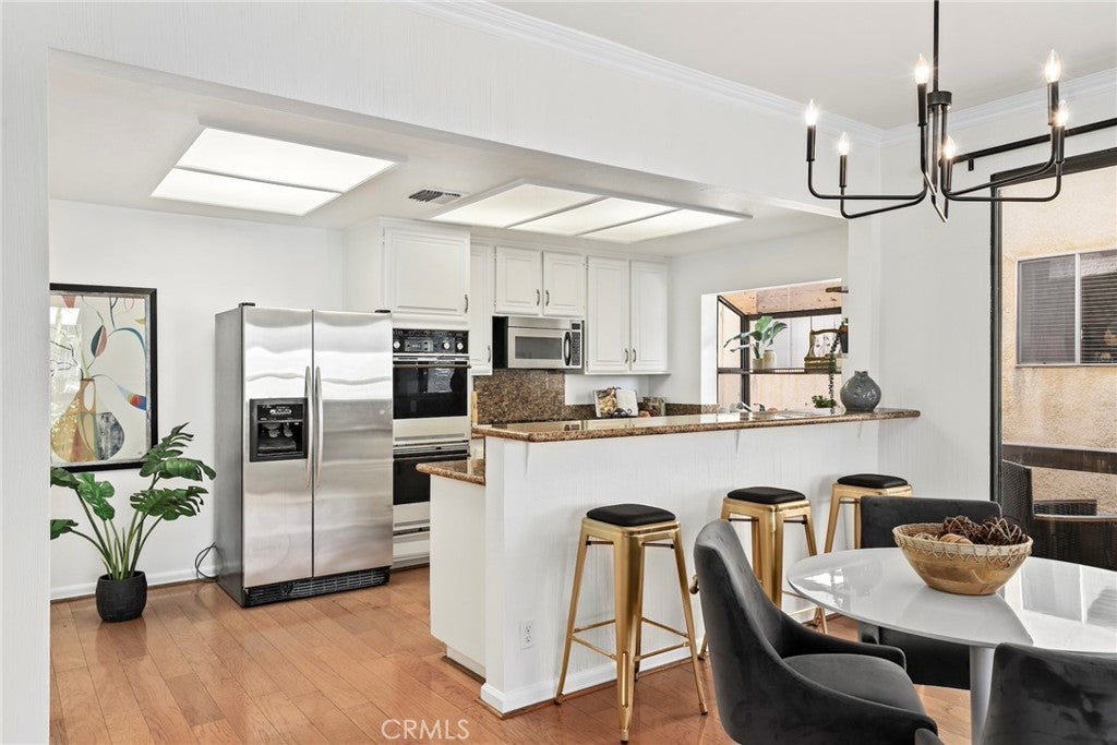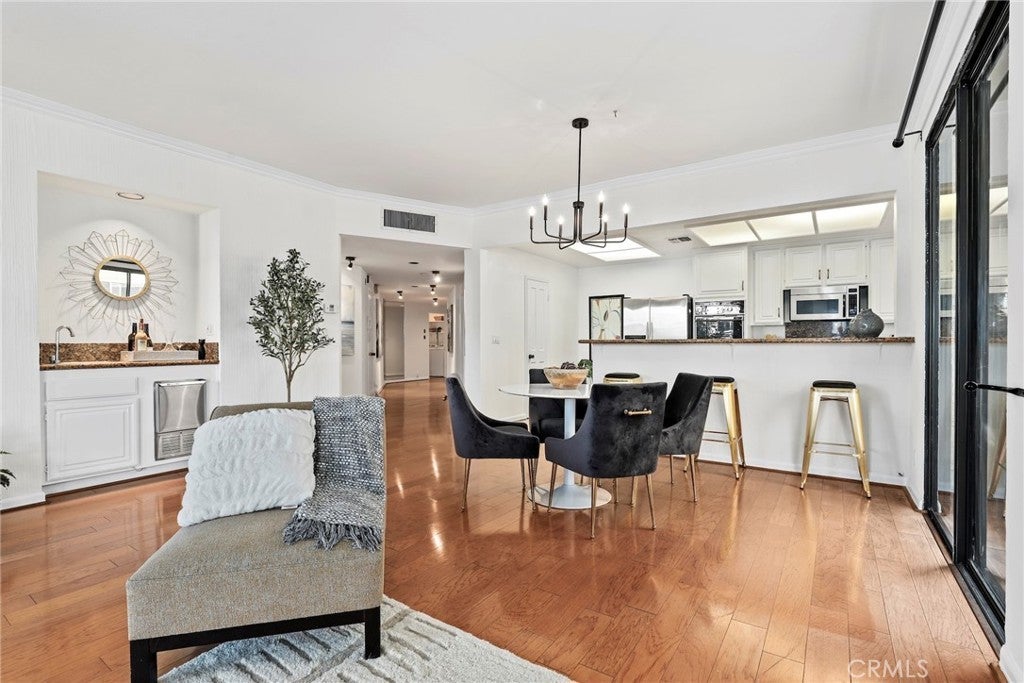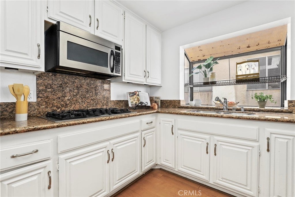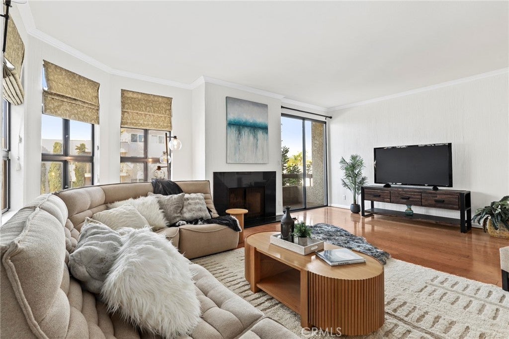 Wonderful Gregory Terrace condo across the street from Beverly Hills. Over 1700+ square feet of living space. Prime location, corner unit with two private balconies and lots of space! Huge, open concept living room with fireplace and wet bar/large dining room and eat in kitchen areas. Wood flooring. BRAND NEW CARPET AND PAINT THROUGHOUT. Two generously sized bedrooms and two full baths including a grand primary suite complete with an ensuite full bath featuring dual vanities and walk in closet. Individual in-unit laundry room with ample storage space. Updated kitchen with granite counter tops, custom cabinets and a walk in pantry. Well maintained smaller building with 18 units, pool, gym and tandem parking (2 spots). Don't miss this amazing opportunity!