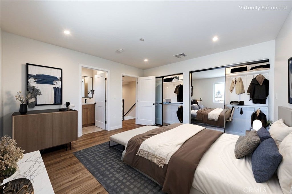 Light-filled and newly built, this modern 4 bed / 3 bath townhome delivers ~2,000 sq ft of stylish living space with two parking spots included. An open-concept great room anchors the home with wide-plank floors, recessed lighting, and sliders to a private balcony—perfect for fresh air and easy indoor/outdoor flow. The designer kitchen features a full stainless appliance suite (refrigerator, range, microwave, dishwasher), expansive quartz countertops, custom wood cabinetry, and a crisp tile backsplash. Bedrooms are generously sized with large closets and great natural light. Bathrooms showcase spa-style finishes—matte black hardware, floating wood vanities, oversized tile, and glass-enclosed showers. Everyday convenience is built in: in-unit washer/dryer, central A/C & heat, double-pane windows, and sleek metal railings throughout.