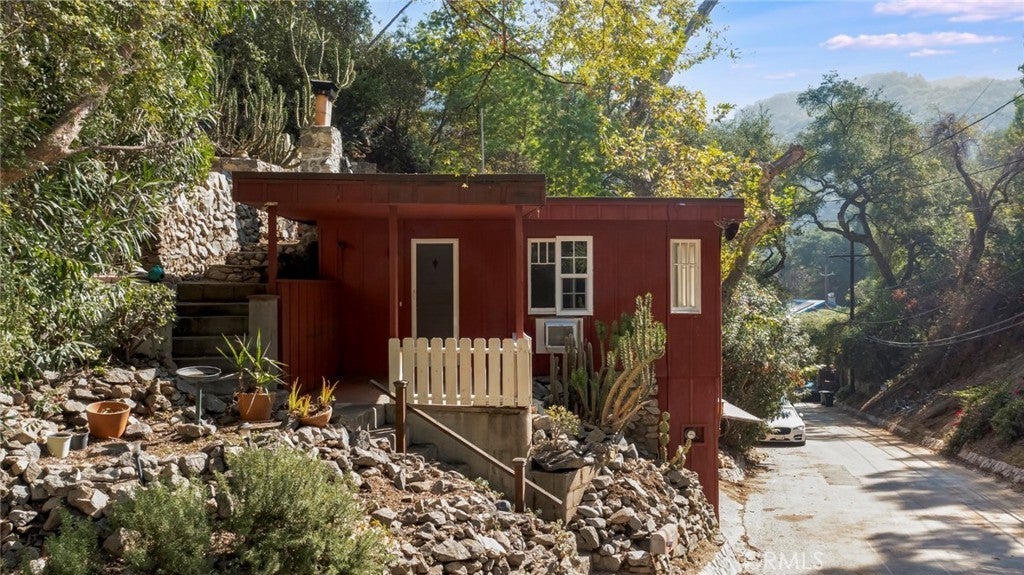 Charming Country Fixer in the Heart of Burbank Hills! Escape the bustle of the city and enjoy this serene country feeling home in the Burbank Hills. This adorable 1-bedroom, 1-bath home with a two-car garage is full of charm and potential. Relax on the welcoming front porch, the perfect spot for morning coffee or bird watching. Step inside to a cozy living room featuring wood beam ceilings, a stone-accented decorative fireplace, and French doors that open to a private balcony surrounded by nature. Sunlight fills the home through an abundance of windows, creating a warm and inviting atmosphere. The spacious bedroom includes a cedar-lined closet and a cozy office nook ideal for working from home. The country-style kitchen offers charm and functionality, complete with a stackable washer and dryer for convenience. Up above, a rooftop area provides a unique spot to unwind and stargaze under the night sky. Offered as-is, this is a rare opportunity to create your own retreat in one of Burbank’s most tranquil and scenic neighborhoods of Country Club Dr.