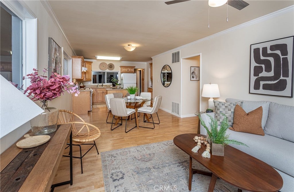 Set mid-block on a quiet street in Magnolia Park, this clean, move-in-ready two-story Burbank home blends timeless character with fresh, flexible living. Thoughtfully updated and freshly staged, it offers comfort, style, and adaptable space for a variety of needs. Downstairs, a bright open layout connects the living, dining, and kitchen areas—ideal for everyday living or entertaining. The kitchen features granite counters, a movable island, and pull-out cabinet organizers, while classic touches like crown molding and built-in decorative shelving add warmth and charm. Three bedrooms and two full baths complete the main level with convenient single-story functionality. Upstairs, a spacious suite with its own bath is paired with a large entertainment retreat featuring a wet bar —an exceptional space for movie nights, sports viewing, or relaxation. A covered backyard patio provides room for outdoor dining or gatherings with minimal maintenance required. The nearly 500 sq ft detached garage offers endless potential as a workshop, gym, studio, or future ADU, and the long driveway with extended parking pad accommodates multiple vehicles or possible RV parking. Freshly painted inside and out, with new laminate floors, refinished hardwood, updated lighting, crown molding, copper plumbing, and newer central AC, this home is move-in ready. Located within the well-regarded Burbank Unified School District and moments from Roosevelt Elementary, Dolores Huerta Middle, and John Burroughs High, plus the Chandler Bikeway, Buena Vista Library, and Magnolia Boulevard’s shops and cafés, this is a rare Magnolia Park offering—quiet, polished, and ready for its next chapter.