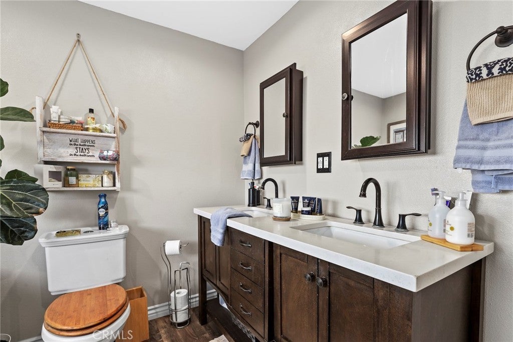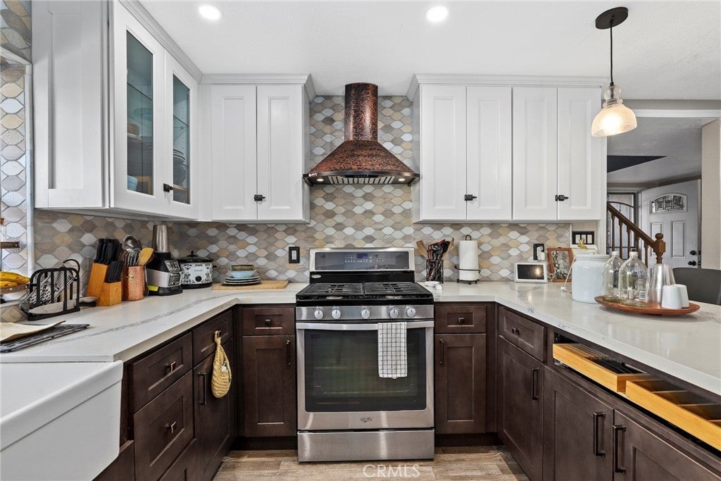 Welcome to 1369 Friant Ave in Simi Valley — a beautifully upgraded 4-bedroom, 2-bath home offering 1,844 sq ft of comfortable living and an inviting backyard retreat. The main level features a fully remodeled 2021 kitchen, thoughtfully redesigned with a ceramic farmhouse sink and copper faucet, quartz countertops, designer stone backsplash, new cabinetry with a dedicated coffee bar, a custom vent hood, recessed lighting, an L-shaped island, and a newer LG dishwasher. The kitchen remodel also included repiping and electrical upgrades, along with new deluxe plank flooring through the entryway. Upstairs, three of the four bedrooms received new deluxe plank flooring in 2020, replacing the original carpet. The fourth bedroom on the main level has been converted into a versatile office/guest room, and many rooms have been freshly repainted, creating a bright and cohesive feel throughout. The backyard is designed for both relaxation and entertainment, featuring an in-ground heated pool and spa with a stone waterfall, surrounded by plant-lined fencing that provides a sense of privacy. A charming rose garden adds to the outdoor atmosphere. This home has been lovingly maintained with care and attention to detail throughout. With thoughtful upgrades, a functional layout, and a private pool-side setting, 1369 Friant Ave is ready to welcome its next owner.