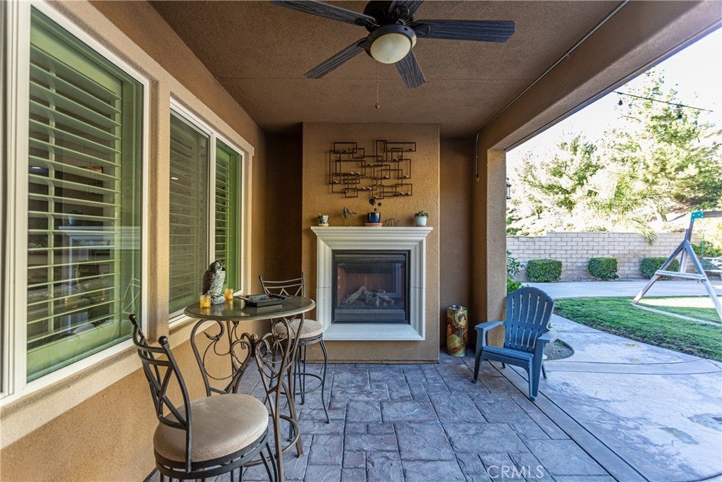 Welcome to 19245 Graham Lane, an impeccably maintained and highly upgraded single-story home located in the desirable Saugus community. This 3-bedroom, 2.5-bath residence offers approximately 2,097 sq. ft. of thoughtfully designed living space and an impressive list of upgrades, all on a quiet, well-kept street close to schools, parks, dining, and shopping. From the moment you arrive, the home showcases beautiful Mediterranean-inspired architecture, a charming arched walkway, professional landscaping, and a spacious 3-car garage, providing both curb appeal and functionality. Step inside to find a bright, open layout highlighted by wide-plank flooring, plantation shutters, recessed lighting, custom built-ins, and a neutral designer palette that complements any style of décor. The heart of the home is the stunning gourmet kitchen featuring an oversized granite island with seating, full granite backsplash, extensive cabinetry, stainless steel appliances, a built-in microwave/oven stack, and a sunlit dining area surrounded by windows. The kitchen flows seamlessly into the spacious living room, where a custom media wall with glass display cabinets, stone-faced fireplace, and pre-wired surround sound creates an inviting atmosphere perfect for entertaining guests or relaxing at home. The peaceful primary suite is privately situated and features large windows overlooking the backyard, a luxurious soaking tub, walk-in shower, dual sinks, and generous counter and storage space. Two additional bedrooms offer flexibility for guests, a home office, workout room, or hobby space. The additional bathrooms include a convenient half bath for visitors and a full bath near the secondary bedrooms. A dedicated indoor laundry room with built-in cabinetry adds convenience and additional storage. Step outside to your own backyard retreat, complete with an expansive stamped-concrete patio, lawn area, hillside views, and a covered outdoor lounge featuring a fireplace and ceiling fan. The yard offers plumbing hookups for a future jacuzzi or built-in BBQ, allowing you to customize your dream outdoor living space. Exterior lighting and mature plants enhance the relaxing atmosphere. Additional features include ceiling fans, excellent storage, and a spacious 3-car garage. This move-in ready home offers an outstanding combination of luxury, comfort, and value — with NO Mello-Roos!