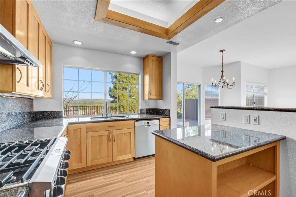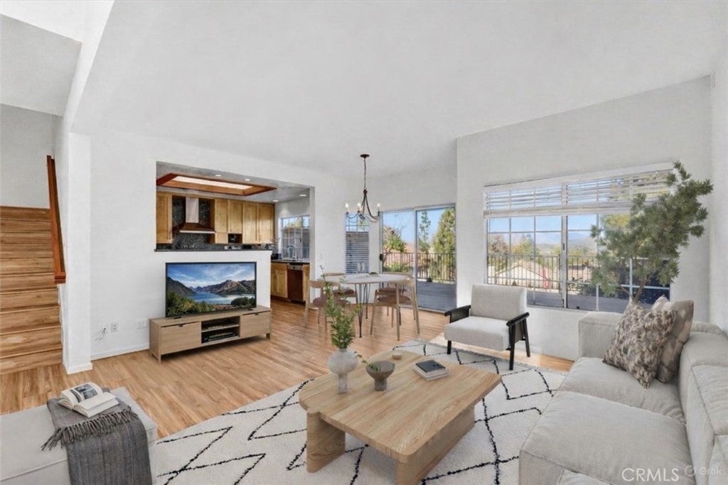 Welcome to this beautifully updated 3-bedroom, 2.75-bath townhome with an attached two-car garage, ideally situated in a view location within the highly desirable Windrose Pointe community. This home has been freshly painted and offers a thoughtful floor plan featuring a downstairs bedroom and full bathroom with shower (not a half bath)—ideal for an office, guests, or multigenerational living. Abundant natural light fills the living and dining areas through multiple windows, enhancing the home’s open and spacious feel. The remodeled kitchen showcases granite countertops and backsplash, stainless steel appliances, and recessed lighting. Laminate flooring throughout (no carpet). Indoor laundry room. Upstairs, two generously sized bedrooms each offer ensuite bathrooms and walk-in closets. Additional highlights include updated bathrooms, mirrored closet doors, vaulted ceilings, and skylights. Step outside to the oversized private deck overlooking the pool, where scenic mountain views create the perfect backdrop for entertaining, barbecuing, or enjoying peaceful evenings outdoors. Direct access to the two-car garage, complete with an epoxy floor, and built-in storage cabinets. Community amenities include a pool and spa. Homeowners association dues cover amenities, building's fire, and earthquake insurance. Neighborhood parks and hiking trails are just a short distance away, along with a great selection of shopping, dining, and convenient freeway access. Enjoy the best of the Conejo Valley lifestyle. Ask me about available FHA financing- as low as 3.5% down.
