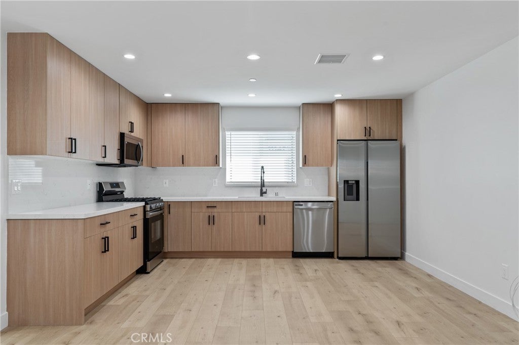 Discover this stunning newly constructed 3-bedroom, 2-bath home offering the perfect blend of modern comfort and stylish finishes in a prime Granada Hills location. Enter inside to a bright and open floor plan featuring wide-plank flooring, recessed lighting, and a generous living area. The chef’s kitchen is designed with sleek quartz countertops, stainless steel appliances, ample cabinetry, and a spacious layout ideal for entertaining and everyday living. The primary suite is a true retreat with a large mirrored closet, private balcony with mountain views, and a spa-inspired en-suite bathroom complete with dual sinks, quartz counters, and a walk-in shower with designer tile and black fixtures. Two additional bedrooms provide plenty of flexibility for family, guests, or a home office. Additional highlights include: 2 full modern bathrooms with upgraded finishes In-unit laundry hookups Central A/C & heat for year-round comfort Private gated entrance and secure property Contemporary design with abundant natural light Located near schools, shopping, dining, and convenient freeway access, this home offers both style and practicality in a highly desirable neighborhood.