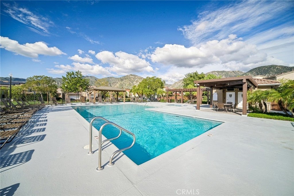 Welcome to resort-style living in the exclusive, gated Mountain Glen Terrace community of the Sylmar Hills. This beautifully updated 4-bedroom, 3-bath home offers approximately 2,885 sq ft of bright, flexible living space with fresh paint, newer flooring, and remodeled bathrooms throughout. The open-concept main level welcomes you into a formal living room that flows seamlessly into a large dining/den and kitchen area—perfect for entertaining or everyday living. The kitchen features a walk-in pantry and opens to the backyard, creating an effortless indoor-outdoor lifestyle. The first floor is thoughtfully designed with a separate laundry room, powder room, and direct-access garage. Upstairs, enjoy all four spacious bedrooms plus a grand family room, ideal for movie nights, a game room, or work-from-home flexibility. The expansive primary suite is a true retreat, complete with a fully remodeled ensuite bath and walk-in closet, while three additional generously sized bedrooms share a full bath. Step outside to a large private backyard, perfect for relaxing, entertaining, or creating your dream outdoor space. Residents of Mountain Glen Terrace enjoy resort-style amenities, including a pool, spa, playground, basketball courts, BBQ areas, and breathtaking mountain views—all within a beautifully maintained, secure gated community. Plus, a low-cost SOLAR LEASE (approx $75/MONTH) is included to help keep energy bills down. Move-in ready, thoughtfully updated, and packed with amenities—this is Sylmar Hills living at its finest. Don’t miss this exceptional opportunity.