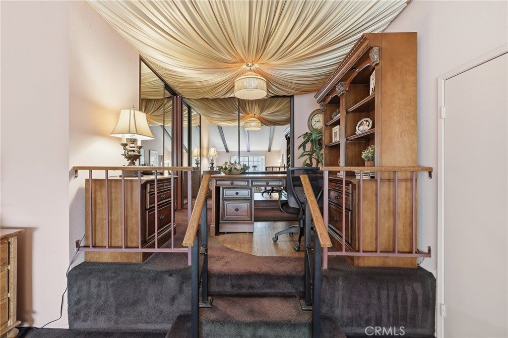 Step into a truly one-of-a-kind Mediterranean Revival–inspired Lake Balboa residence where timeless design, generous scale, and architectural character come together. Ideally positioned as an end unit near the back of the complex, this home enjoys a quiet, private setting within the community. This expansive condominium offers beautifully preserved living space rich with old world charm and thoughtful design details. Dramatic brick archways, warm wood accents, vaulted ceilings with exposed beams, and a sunken living room create a distinctive, villa-like ambiance ideal for both everyday living and entertaining. The thoughtfully designed floor plan offers excellent separation of spaces, multiple living areas, and abundant storage throughout. The kitchen is complemented by a dedicated dining area and a charming breakfast nook featuring beautiful built-in cabinetry, as well as a wet bar conveniently located just off the kitchen—perfect for entertaining and everyday use. Both bedrooms are generously sized and feature full ensuite bathrooms, offering comfort and privacy. The primary suite is a true retreat, complete with a unique loft-style interior workspace overlooking the main bedroom area—ideal for a private office, reading nook, or creative studio—along with a spacious ensuite bath featuring dual sinks and well-preserved original finishes. A powder room is conveniently located on the main living level, and the upstairs laundry room includes a full-size washer and dryer. The home also features a direct-access two-car garage and has been meticulously maintained, showcasing original finishes that reflect classic Mediterranean-inspired design while offering an exceptional opportunity for a buyer to personalize or thoughtfully modernize over time. An inviting home with presence, personality, and enduring appeal—perfect for buyers who appreciate character, craftsmanship, and generous interior proportions.