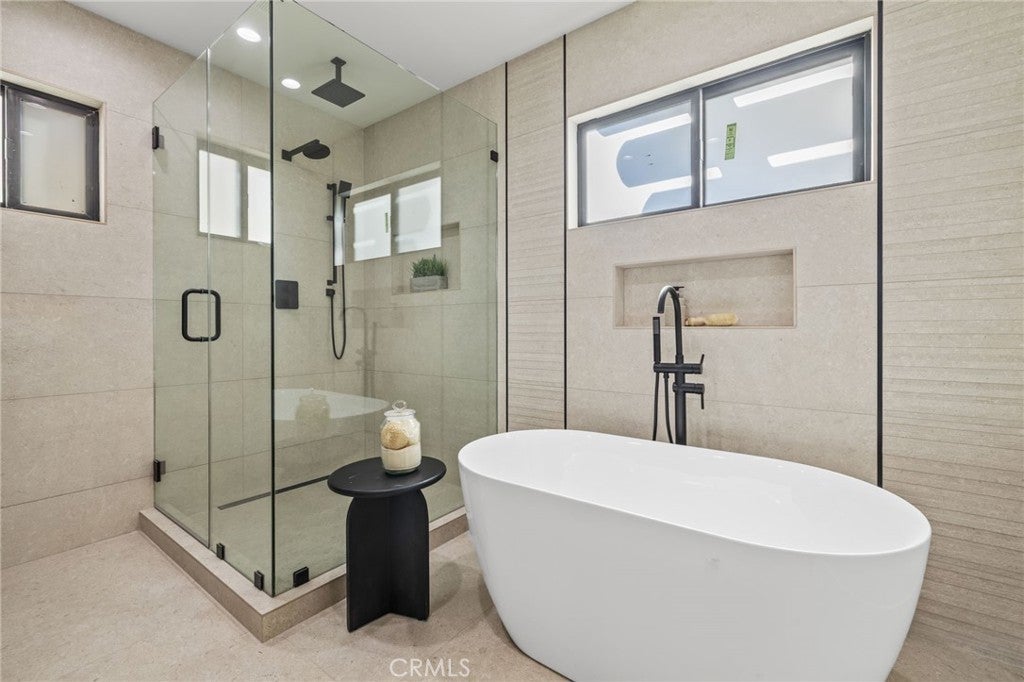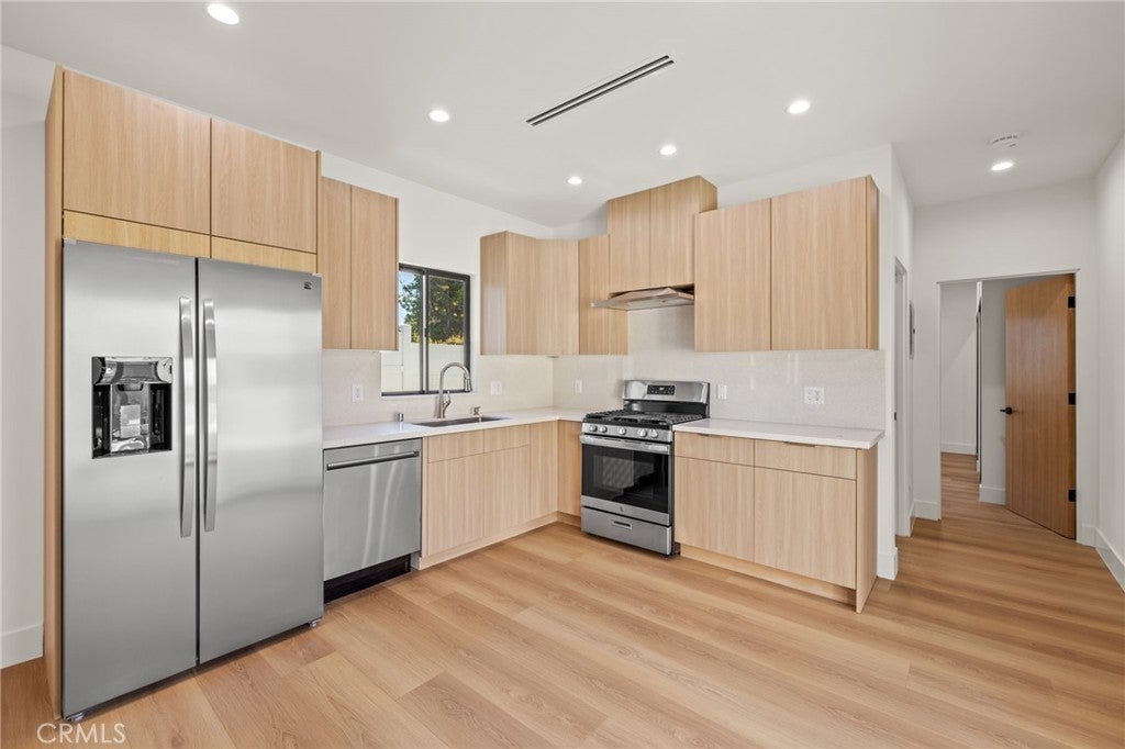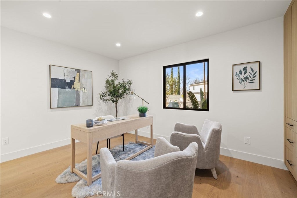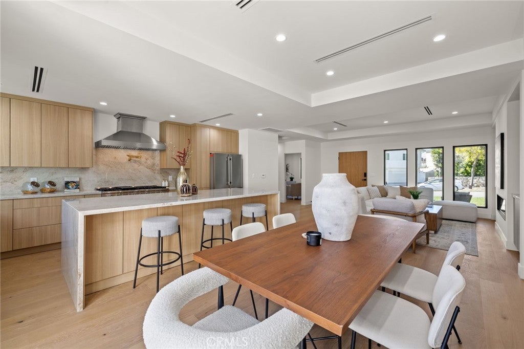 Welcome to this Stunning Burbank Hills Home — Perfect for Multi-Generational Living or Income Potential! Step into this beautifully remodeled property where timeless style meets modern convenience. Extensively updated and expanded, this home now features three ensuite bedrooms, a powder room, and an open-concept floor plan designed for comfortable living and effortless entertaining. Enter through the large covered front porch and be greeted by high tray ceilings and abundant natural light that fill the spacious interior. The custom kitchen is a chef’s dream, showcasing Taj Mahal quartz countertops, a generous center island with seating for four, and top-of-the-line stainless steel appliances, including a drawer microwave conveniently built into the island. The dining area flows seamlessly into the main living space and opens completely to the outdoor patio through magnificent bifold doors, creating an ideal indoor-outdoor living experience. The primary suite offers a true retreat with two walk-in closets and a spa-inspired bathroom featuring a soaking tub, double vanity, and a custom-tiled shower that exudes elegance. At the rear of the property, discover a recently built 749 sq. ft. one-bedroom, one-bathroom ADU with brand-new paid solar panels. Thoughtfully designed to mirror the finishes of the main home, this accessory dwelling unit provides exceptional flexibility for guests, extended family, or rental income. Additional highlights include a two-car garage with an epoxy-coated floor and finished walls, and a New Tech Norwegian teak-finish siding façade that enhances the home’s curb appeal. Nestled in the Burbank hills, this property offers access to top-rated schools, excellent city services, and close proximity to major studios — the perfect combination of luxury and location. This is truly a must-see property!