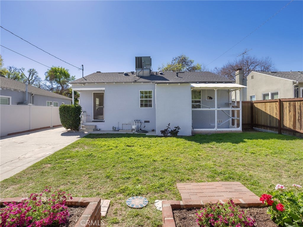 Situated on a generous 6,750 square foot lot, this inviting 1,178 square foot home offers comfort, character, and everyday functionality. Featuring 3 well-proportioned bedrooms and 1 bathroom, the layout is thoughtfully designed to maximize both space and natural light. A formal entryway welcomes you inside, leading to a spacious living room highlighted by a cozy fireplace, perfect for relaxing evenings at home. The formal dining room provides an ideal setting for gatherings and special occasions, while the kitchen includes a dedicated dining area for casual meals and morning coffee. Additional conveniences include an indoor laundry room, new windows that enhance energy efficiency and natural light, and central heating and air conditioning for year-round comfort. Outside, the expansive backyard offers endless possibilities for entertaining, gardening, or future expansion. A covered patio creates a comfortable space for outdoor dining and relaxation. Completing the property is a 2-car detached garage, providing ample parking and storage. This home combines classic charm with modern updates, making it a wonderful opportunity for comfortable living and entertaining.