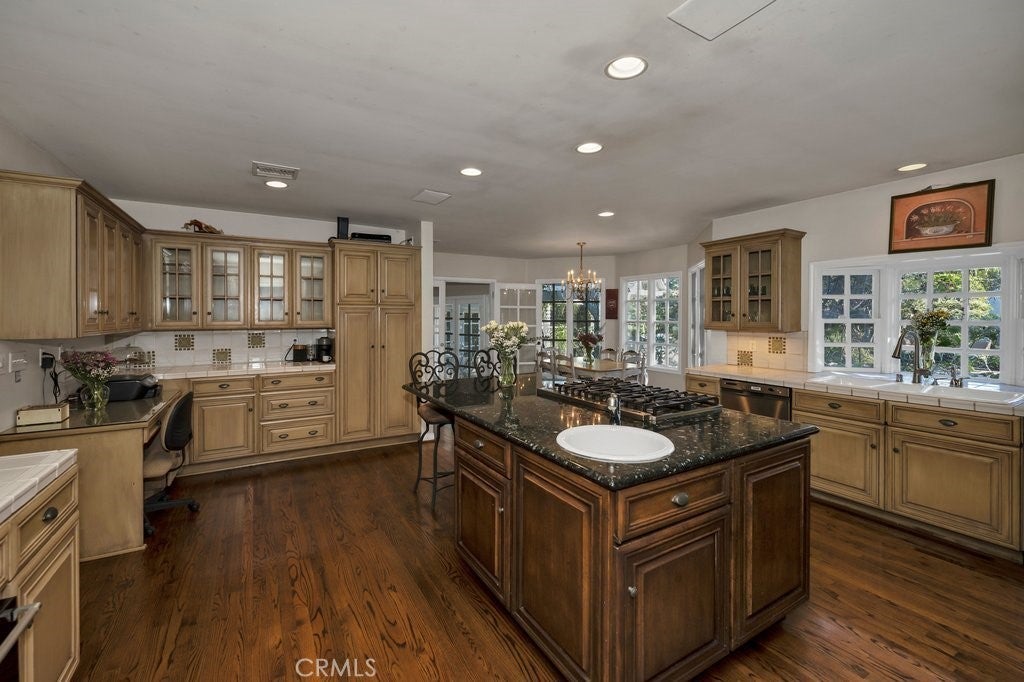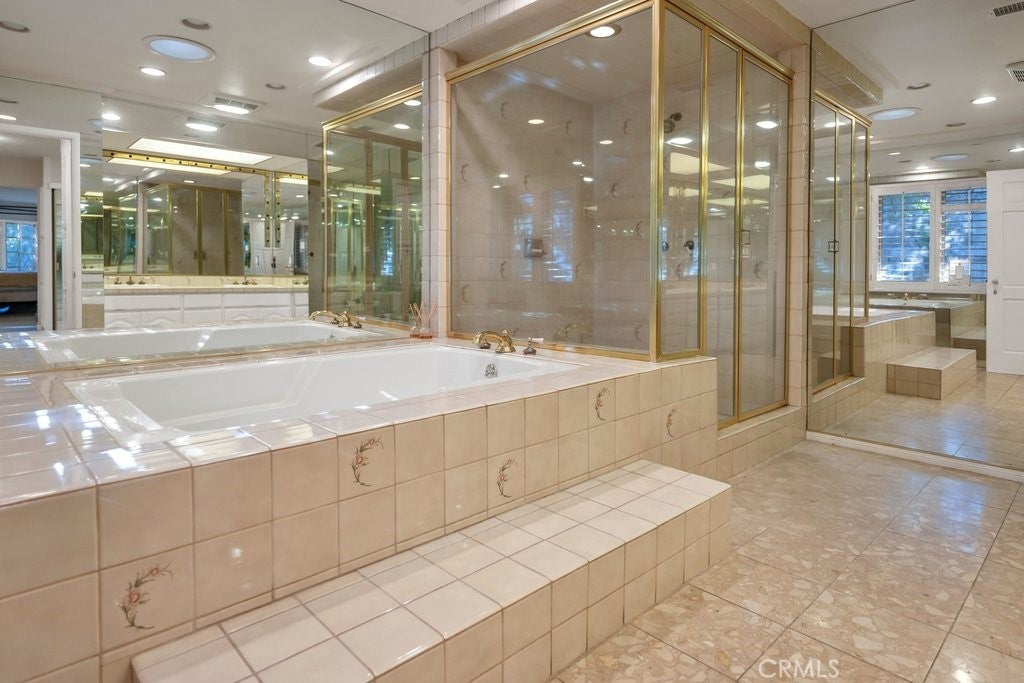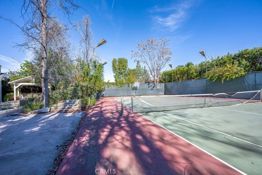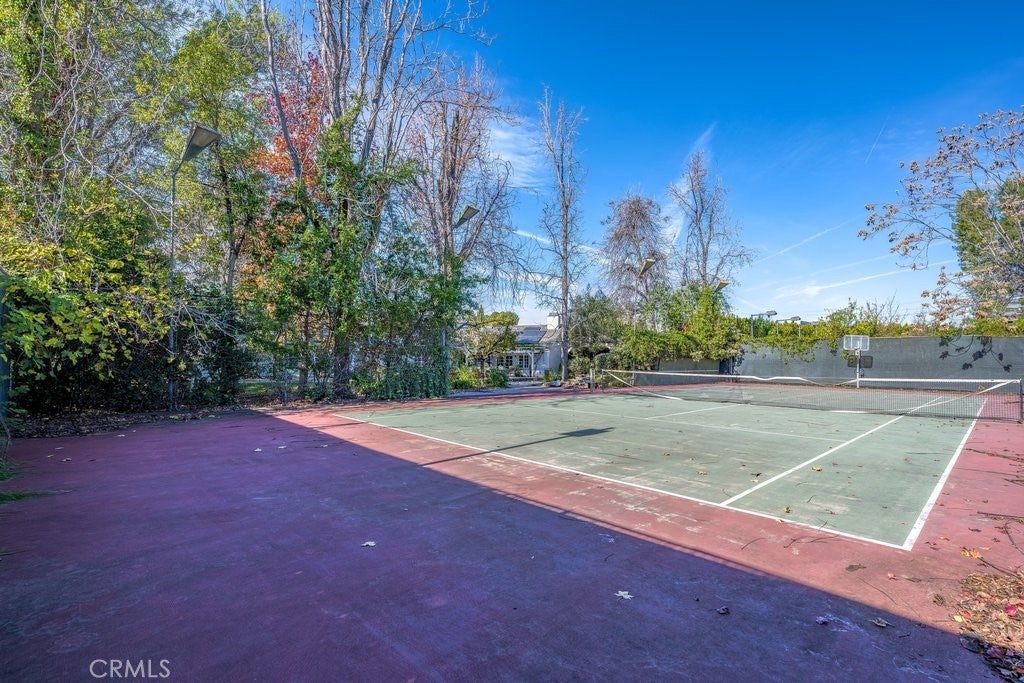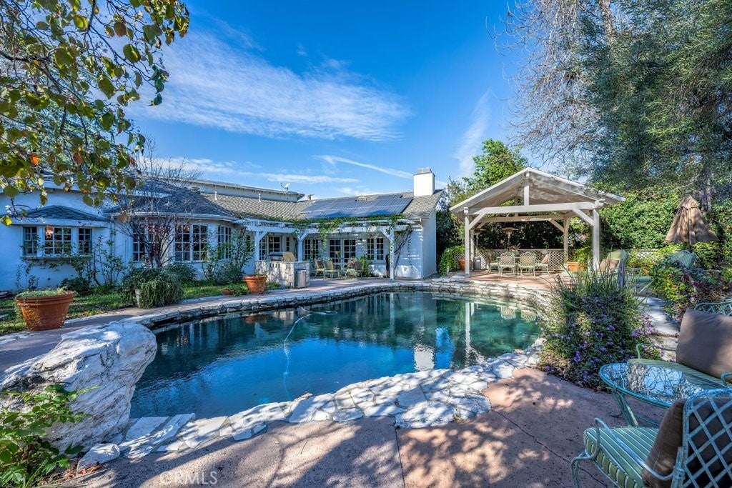 LOCATION, LOCATION! South of the boulevard in highly sought-after Tarzana, this rare single-story gated gem offers 4,320 sq.ft. of luxurious living space with 5 bedrooms, 3 full baths, a 3/4 bath, and a 1/2 bath. Soaring ceiling and double sided fireplace highlights the spacious living room. Primary Suite features a fireplace and adjacent den/reading room with built-in bookshelves, plus a cozy double-sided fireplace connecting to the living room. Primary bathroom with ample mirrored closet sliding doors, plus a separate shower and tub. Jack and Jill bathroom perfect for large families or accommodating guests. Additional room currently used as a game room, but also ideal as a family room or hangout space. Generous kitchen overlooks the backyard, pool, and tennis court- perfect for cooking while entertaining quests. Oasis backyard like a private resort, enjoy the fire pit on those cool nights, Relax, unwind and enjoy the serene outdoors in the beautiful gazebo. Location of this Gem is perfectly situated just minutes from the 101 Freeway, Tarzana Village , and Westfield Topanga for convenient shopping and dining. Don't miss out! Priced to make this your dream home.