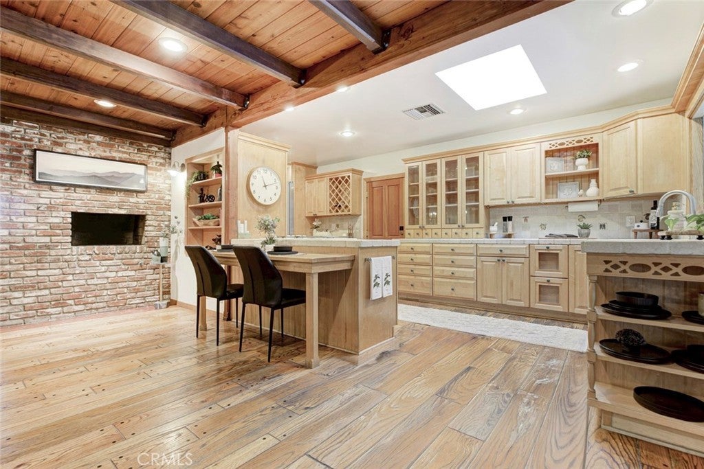 • Interior FeaturesBeamed Ceilings, Breakfast Bar, Built-in Features, Block Walls, Separate/Formal Dining Room, Country Kitchen, Open Floorplan, Recessed Lighting, Storage, Sunken Living Room, Track Lighting, All Bedrooms Down, Bedroom on Main Level, Main Level Primary, Multiple Primary Suites, Primary Suite, Brick Walls, Ceramic Counters