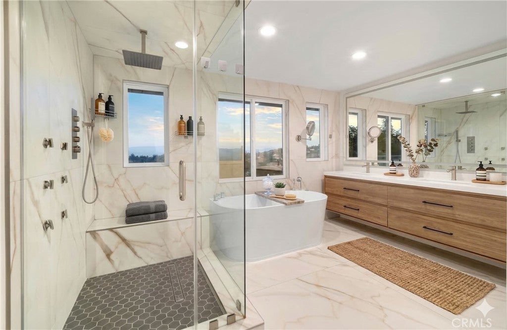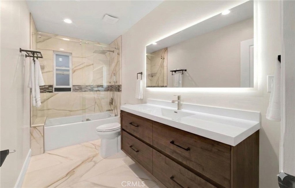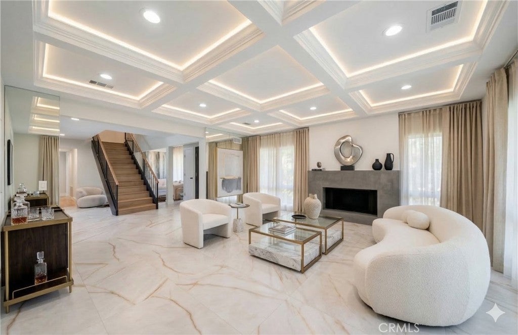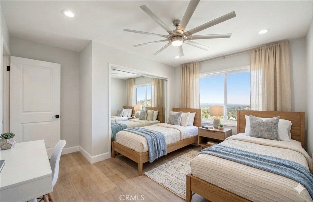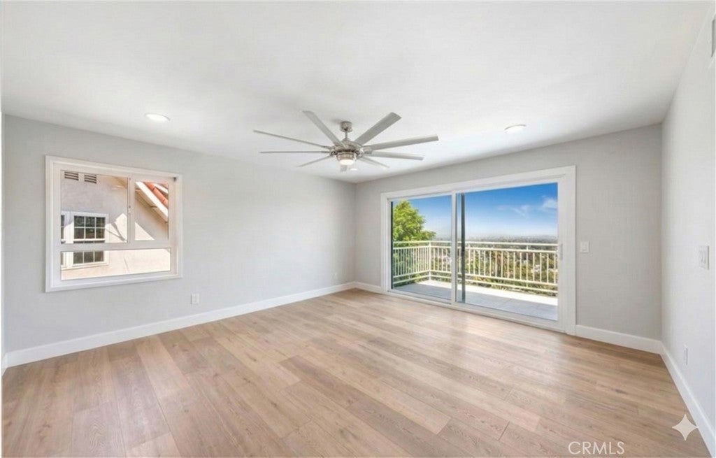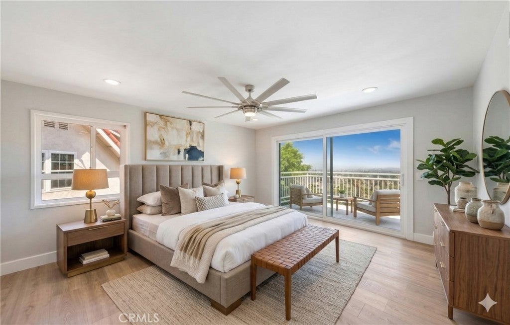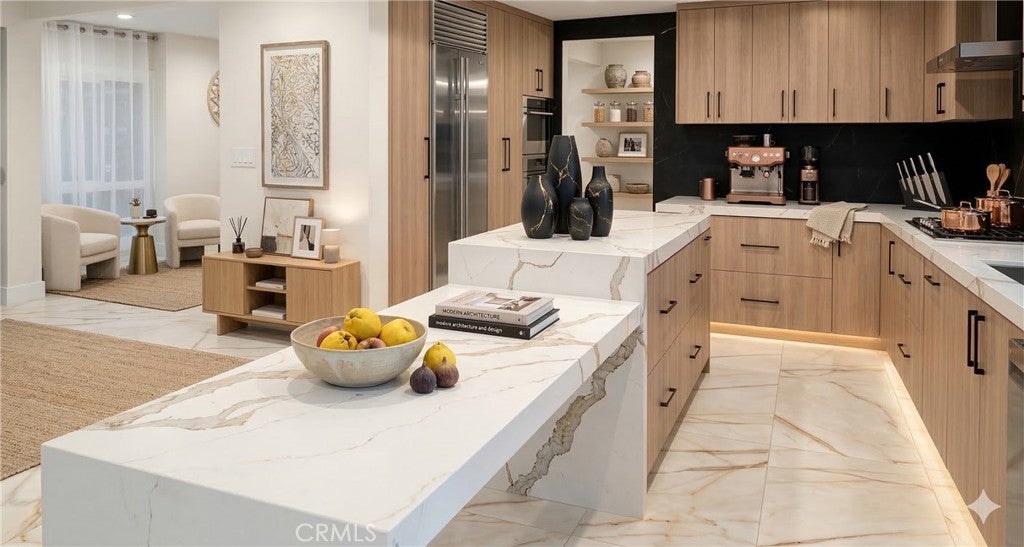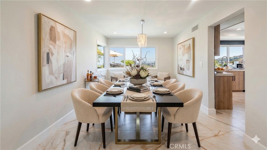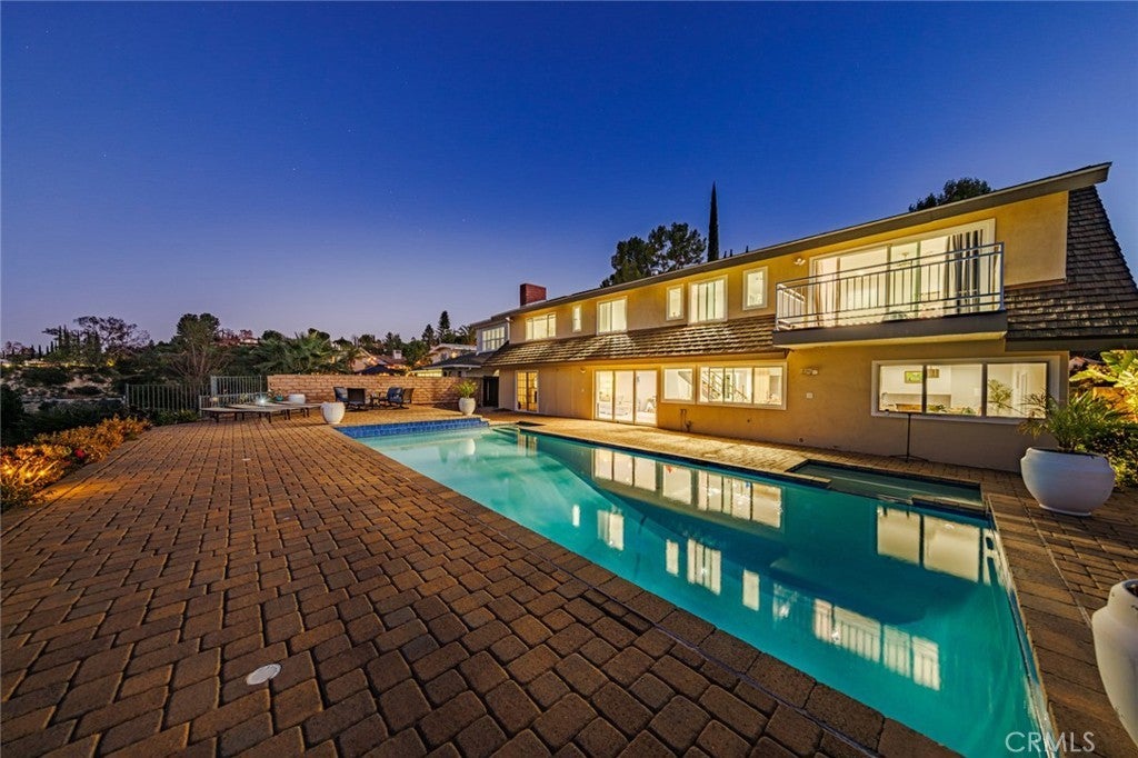 Perched above the sought-after Mulwood neighborhood of Calabasas, this contemporary home commands breathtaking panoramic views of the city and surrounding valley—truly a must-see. Thoughtfully designed with luxury and comfort in mind, every detail of this exceptional residence has been meticulously curated. The home features five spacious bedrooms and three beautifully remodeled bathrooms, enhanced by abundant natural light, recessed lighting, ample storage, and refined high-end finishes throughout. Wide-plank wood flooring paired with elegant marble surfaces flows seamlessly through the home, adding warmth and sophistication to its clean, modern aesthetic. At the heart of the home is a custom gourmet chef’s kitchen, a true showpiece outfitted with premium Wolf appliances, a Sub-Zero refrigerator, waterfall-edge countertops with accent lighting, and dramatic accordion-style glass doors that create a seamless indoor-outdoor living experience. The primary suite offers an expansive private balcony with sweeping views, a generous walk-in closet, and a luxurious spa-inspired bathroom. Situated on a quiet street, the outdoor space is equally impressive, featuring a fully hardscaped yard with a sparkling pool and spa, ideal for entertaining or unwinding under the open sky. Additional highlights include owned solar panels that dramatically reduce utility costs, a brand-new HVAC system, no HOA fees, and placement within the highly sought-after Las Virgenes Unified School District, all just minutes from Calabasas’ premier shopping, dining, and entertainment. NO HOA | LAS VIRGENES SCHOOL DISTRICT