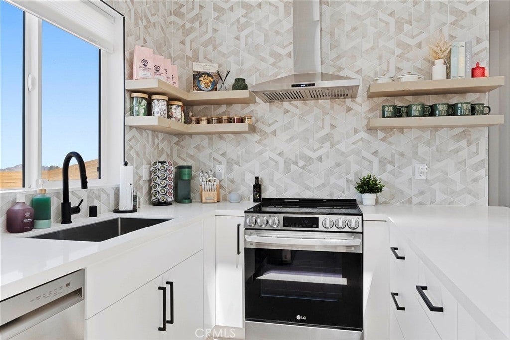 • AppliancesDishwasher, Electric Cooktop, Electric Oven, Disposal, High Efficiency Water Heater, Microwave, Refrigerator, Range Hood, Tankless Water Heater, Dryer, Washer