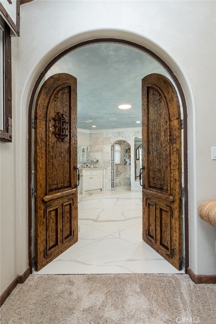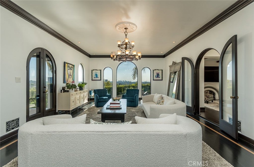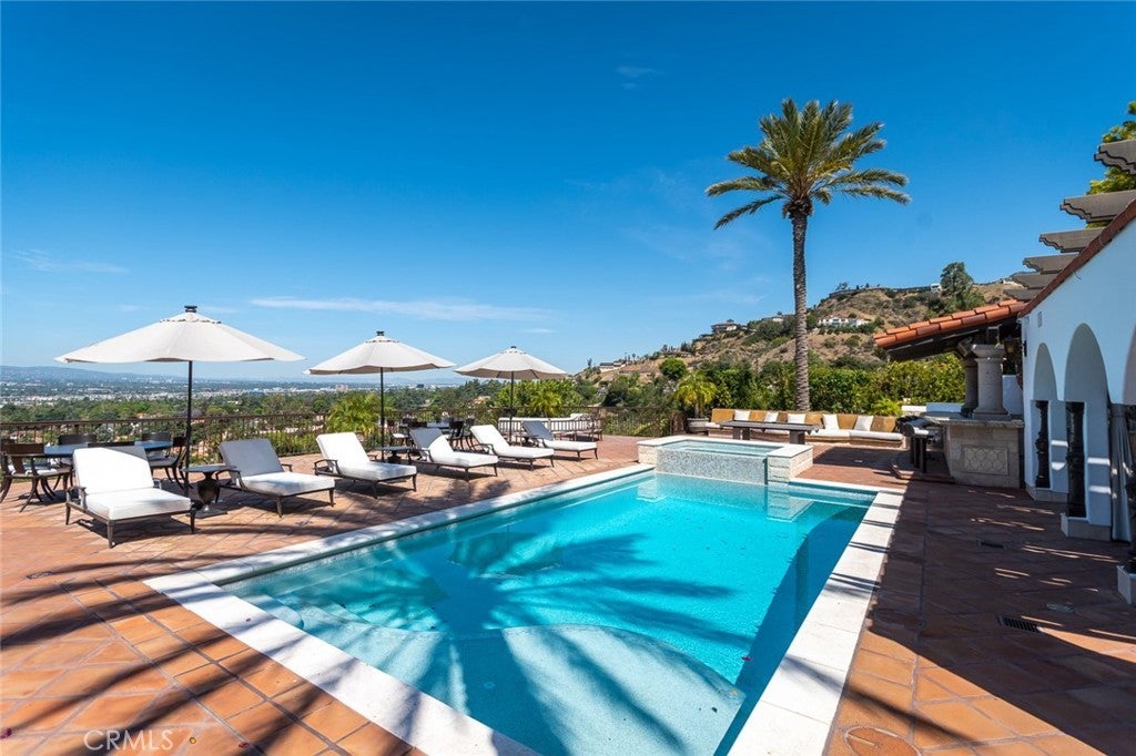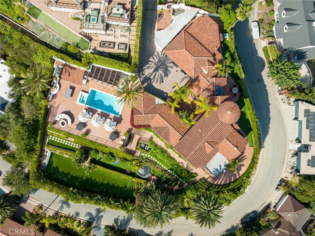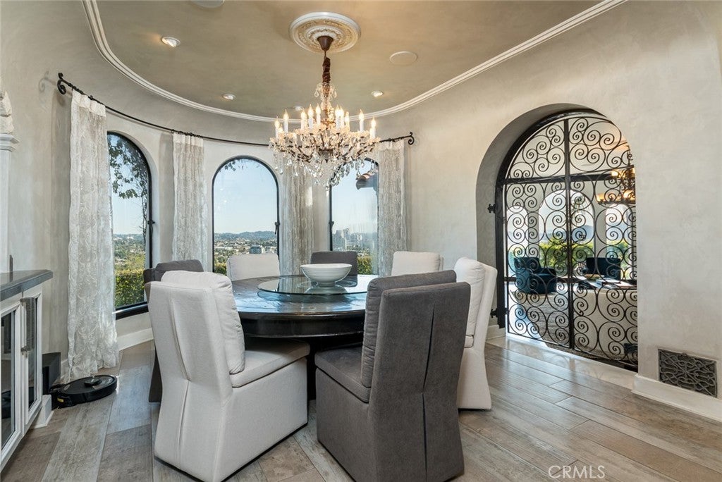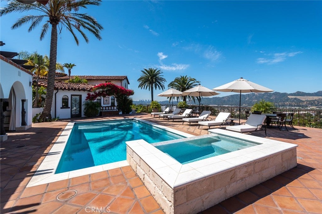 Perched above historic Verdugo Viejo, Lorelei is a rare and commanding Spanish Revival estate offering timeless architecture, exceptional privacy, and sweeping panoramic views stretching from downtown Los Angeles across Glendale and Burbank to the San Gabriel Mountains—and, on clear days, the Pacific Ocean. Originally constructed in 1929 by renowned architect Peter Damm, the main residence spans approximately 7,700 square feet and is thoughtfully designed to honor its historic character while accommodating modern living. A grand gated courtyard with hand-painted Spanish tile and a tranquil fountain sets an unforgettable arrival. Inside, arched doorways, Venetian plaster walls, trellis-pattern marble floors, and rich hardwoods define the home’s authentic craftsmanship. The formal living room is anchored by dramatic windows framing the skyline, while the adjacent family room features an original hand-carved stone fireplace. Entertaining spaces flow effortlessly into a refined formal dining area and a sunlit gourmet kitchen equipped with high-end appliances, breakfast nook, and garden views. The primary suite is a private retreat with commanding vistas, balcony, walk-in closet, spa-inspired bath, and adjacent office or nursery. A private gym and dance studio, discreetly located below, completes the owner’s wing. The estate functions as a true compound, offering a spacious guest house with kitchen and living room, an additional pool house or office, and separate staff or guest accommodations—ideal for extended stays or multigenerational living. Outdoors, lush multi-tiered grounds surround a resort-style pool and spa, multiple dining terraces, and an expansive cabana featuring a full outdoor kitchen, heaters, and built-in entertainment—perfect for intimate gatherings or large-scale events. A private wine cellar and adjoining game room add a final layer of character, reinforcing the home’s legacy as a residence designed for both elegance and enjoyment. A rare opportunity to own a historically significant, view-driven Spanish estate—private, cinematic, and truly irreplaceable.