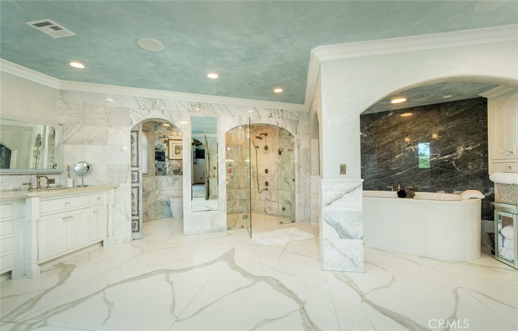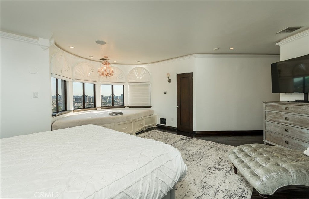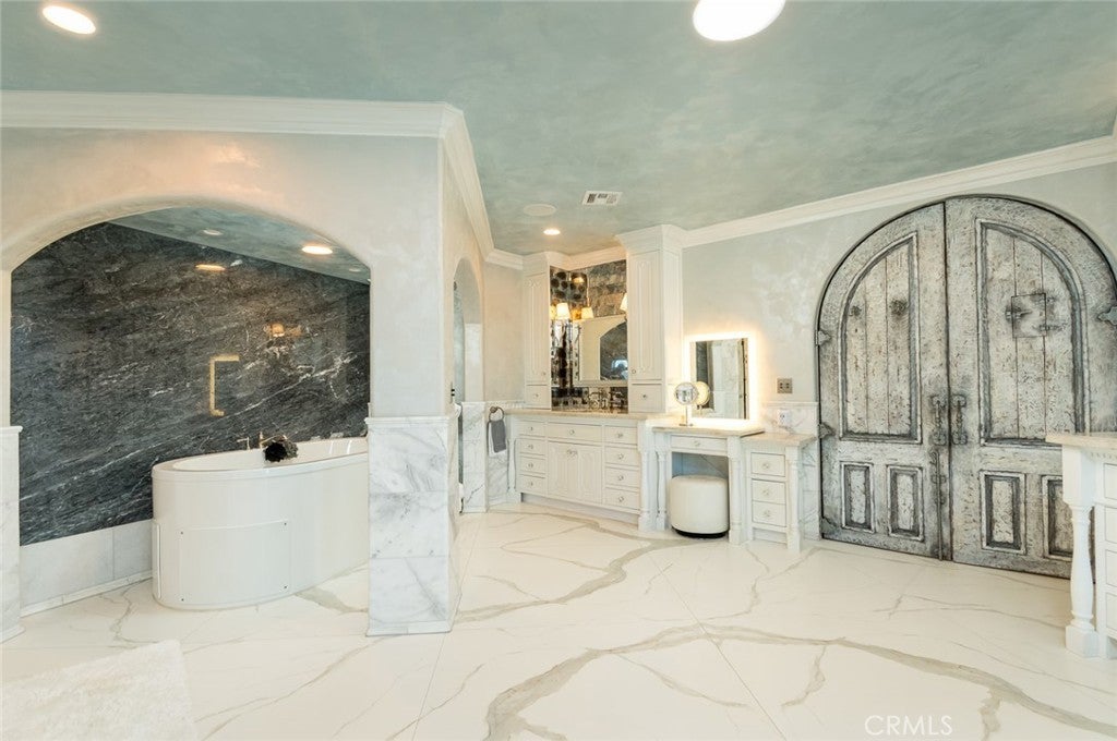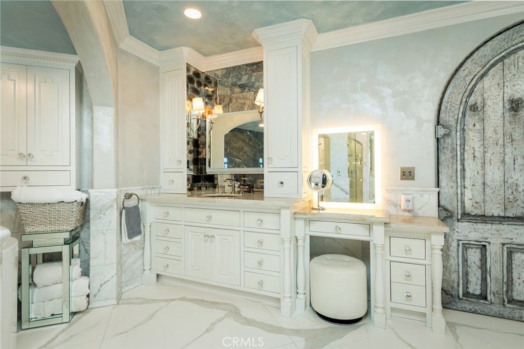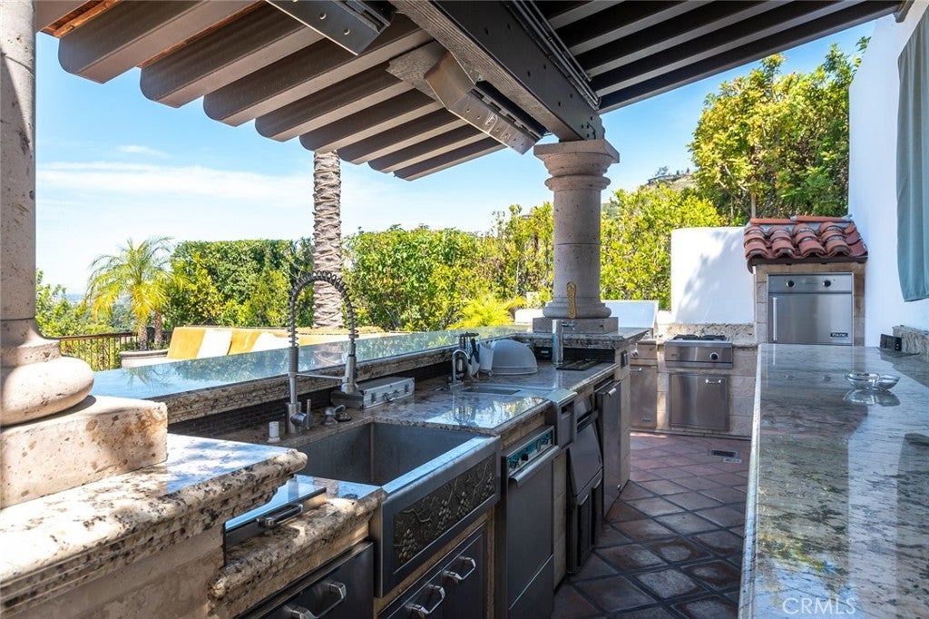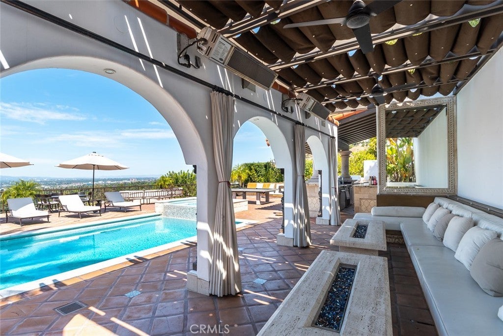 Perched above historic Verdugo Viejo, Lorelei is a rare and commanding Spanish Revival estate offering timeless architecture, exceptional privacy, and sweeping panoramic views stretching from downtown Los Angeles across Glendale and Burbank to the San Gabriel Mountains—and, on clear days, the Pacific Ocean. Originally constructed in 1929 by renowned architect Peter Damm, the main residence spans approximately 7,700 square feet and is thoughtfully designed to honor its historic character while accommodating modern living. A grand gated courtyard with hand-painted Spanish tile and a tranquil fountain sets an unforgettable arrival. Inside, arched doorways, Venetian plaster walls, trellis-pattern marble floors, and rich hardwoods define the home’s authentic craftsmanship. The formal living room is anchored by dramatic windows framing the skyline, while the adjacent family room features an original hand-carved stone fireplace. Entertaining spaces flow effortlessly into a refined formal dining area and a sunlit gourmet kitchen equipped with high-end appliances, breakfast nook, and garden views. The primary suite is a private retreat with commanding vistas, balcony, walk-in closet, spa-inspired bath, and adjacent office or nursery. A private gym and dance studio, discreetly located below, completes the owner’s wing. The estate functions as a true compound, offering a spacious guest house with kitchen and living room, an additional pool house or office, and separate staff or guest accommodations—ideal for extended stays or multigenerational living. Outdoors, lush multi-tiered grounds surround a resort-style pool and spa, multiple dining terraces, and an expansive cabana featuring a full outdoor kitchen, heaters, and built-in entertainment—perfect for intimate gatherings or large-scale events. A private wine cellar and adjoining game room add a final layer of character, reinforcing the home’s legacy as a residence designed for both elegance and enjoyment. A rare opportunity to own a historically significant, view-driven Spanish estate—private, cinematic, and truly irreplaceable.