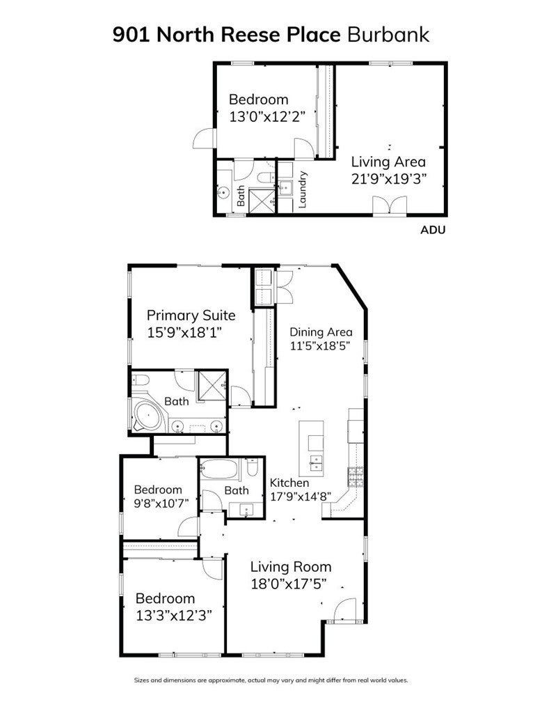 Welcome home to 901 N Reese, a well-maintained, spacious Burbank single family home on a beautiful tree-lined street that’s been in the same family for decades, where comfortable living and rare flexibility come together in one of the neighborhood's most sought-after locations. This quiet, open-format 1550 sq ft main home offers three, all-generous-sized bedrooms and two full bathrooms, with a retreat-style primary suite separate from the other bedrooms and complete with a spa-style tub and a slider that opens up to the back patio — a peaceful setting to start and end your day. The home features the kitchen at its heart, with tasteful cabinetry, bar seating and plenty of room for a large dining table. The home underwent a significant addition in 2005, so much of the home’s systems are newer meaning less maintenance over time. Additionally, there is a newer roof (approx 7 years old), dual-paned windows, brand new flooring in the bedrooms, and new interior and exterior paint throughout. A large, 600 sq ft. two-room detached converted garage with a full bathroom, washer and dryer and sink adds exceptional versatility, whether you're looking to accommodate extended family, create a dedicated home workspace or generate rental income. The private backyard has a built-in countertop, sink and storage for hosting weeknight meals and weekend get-togethers al fresco. Set on one of the most beautiful tree-lined streets in Chandler Park, this property is steps from the beloved Chandler Bike Path and walkable to some of Burbank's highly-rated elementary, middle, and high schools. Other local favorites within walking distance include Amor A Mi contemporary Mexican cuisine, Fancy Free artisan wine and liquor, Cal Elite kids gymnastics, the charming Three Sisters Coffee & Tea cafe, and Tony's Darts Away for craft beer lovers. Safely walk, bike or skate to the lively events of Magnolia Park, and enjoy quick and easy access to the 5 Freeway and Downtown Burbank, home to the #1 ranking AMC 16 Dolby movie theater. Whether you're searching for your family's next home or a savvy investment opportunity, this property truly delivers on every level. Schedule your showing today.