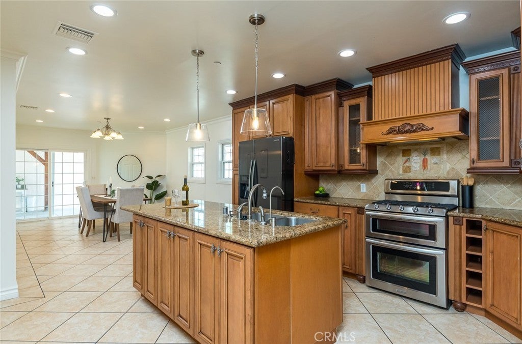 • AppliancesDouble Oven, Dishwasher, Disposal, Gas Oven, Refrigerator, Freezer, Ice Maker, SixBurnerStove