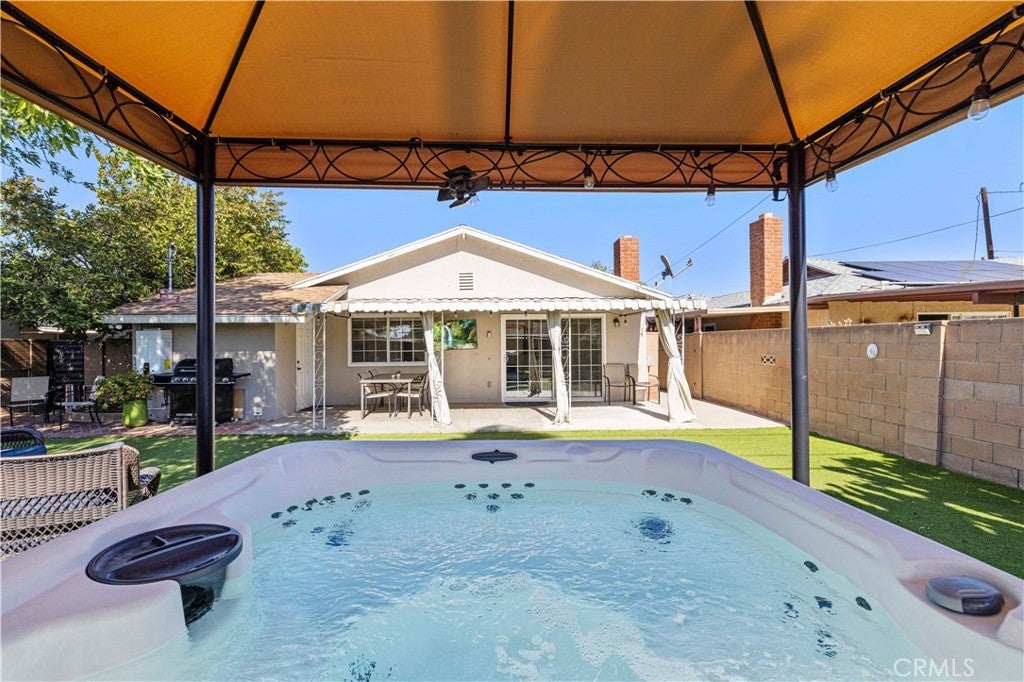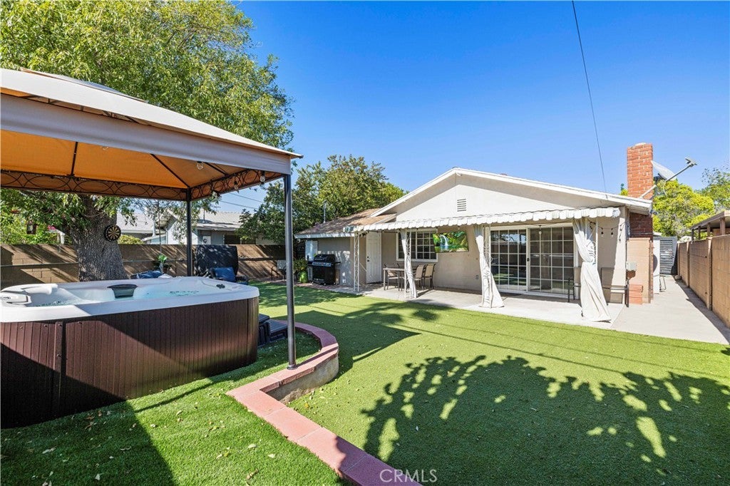Prime gem tucked away in a quiet, desirable pocket of Sun Valley — where everyday living feels like a private retreat. From the moment you arrive, the inviting curb appeal, drought-tolerant landscaping, and charming orange tree create a warm and welcoming first impression. Inside, abundant natural light pours through expansive windows and sliding glass doors, filling the spacious living and dining areas. Lovingly maintained, this single-level home features a cozy fireplace, recessed lighting, new flooring, and an updated kitchen with granite countertops and a breakfast bar—perfect for both daily living and effortless entertaining. The open floor plan creates a seamless flow between the living room, dining area, and kitchen. Sliding glass doors lead to your own backyard sanctuary. A covered patio, vibrant water-wise turf, native landscaping, mature guava tree, and relaxing spa create a peaceful outdoor escape—ideal for al fresco dining, entertaining guests, or simply unwinding under the California sky. Designed with comfort and efficiency in mind, the home includes a tankless water heater and EV car charger. The two-car garage offers excellent potential for conversion into an ADU, multigenerational living space, or additional income opportunity (buyer to verify). Recent upgrades include new flooring throughout, a tankless water heater, updated bathroom vanities with reglazed tubs, and a full appliance package including refrigerator, dishwasher, and washer/dryer. Additional highlights include an alarm system with cameras, coded entry access, paver driveway, EV charger, and a backyard spa with electrical outlets ready for outdoor entertaining. This 4-bedroom, 2-bath home features a spacious primary suite with a private bath and a flexible layout with income potential. Conveniently located near shopping, dining, parks, hiking trails, and freeway access—and just minutes from Burbank, major studios, and the airport—this home offers the perfect balance of peaceful retreat living and everyday convenience.