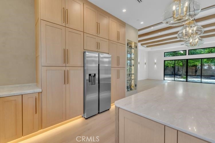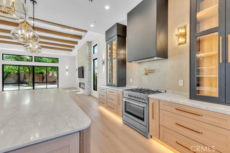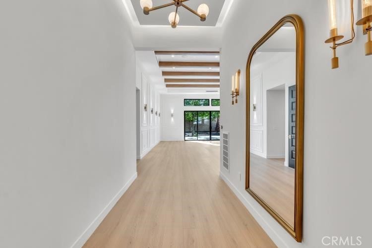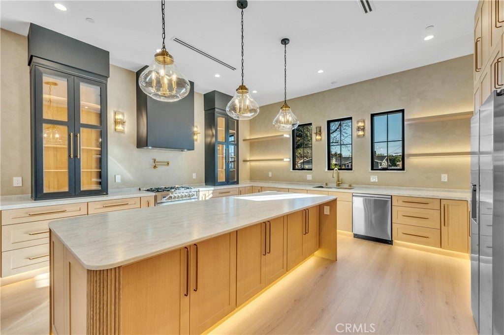Experience luxury living at its finest in this modern masterpiece located in North Hills. Newly re-built house features 3 Bedrooms and 3 Bathrooms with Modern Amenities, High Ceilings, Recessed Lighting and Fireplace. The house offers a perfect blend of comfort and style, featuring an open floor plan that seamlessly connects the living, dining, and kitchen areas creating an inviting atmosphere for gatherings and relaxation. Entertainment-ready living space with built-in surround sound and security cameras. Sleek Gourmet kitchen is both beautiful and functional, equipped with top-of-the-line appliances and Quartz Countertops. The luxurious primary suite features Custom walk-in closets and a spa-like bathroom complete with Soaking Tub, oversized shower and dual vanities. Separate Laundry. Sliding door in living room will lead you to an entertainer's backyard. The show-stopping outdoor oasis expands your living space with outdoor kitchen, providing an ideal setting for alfresco dining and entertaining. You will fall in love with this property. Welcome home to a lifestyle of luxury, comfort, and sophistication, where every detail has been meticulously crafted to exceed your expectations.