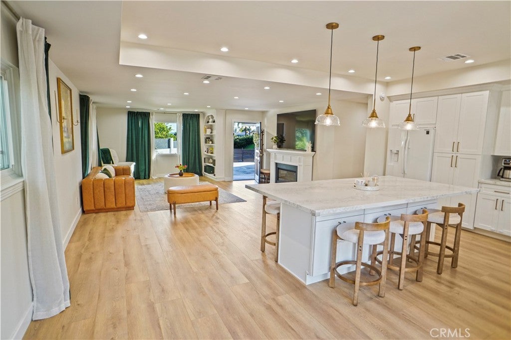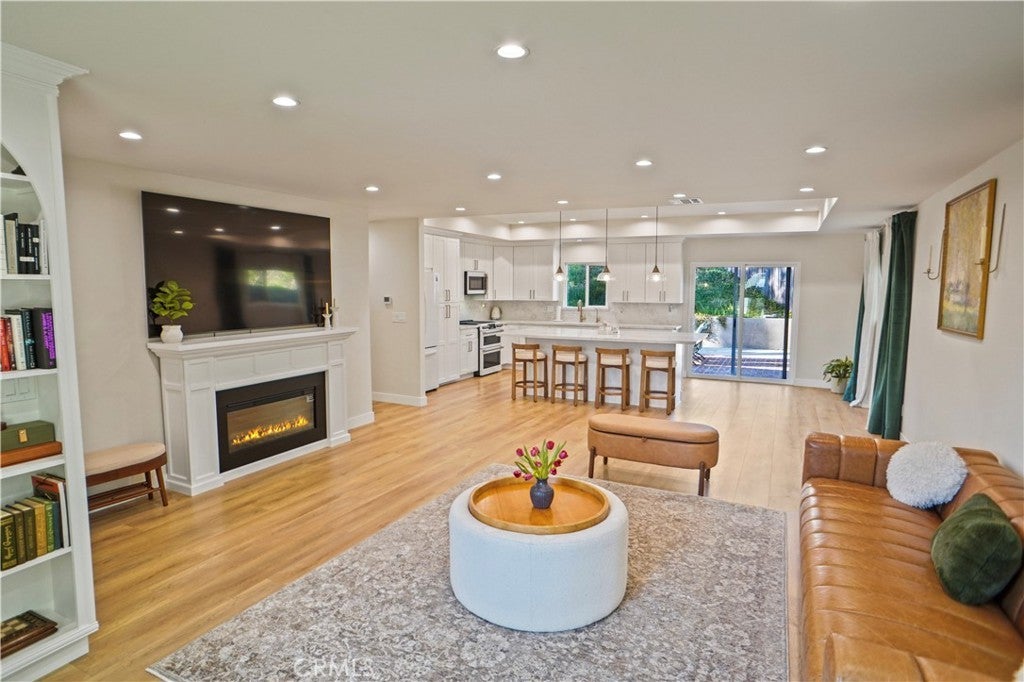 Located on a quiet cul-de-sac in one of Granada Hills’ most desirable neighborhoods north of Rinaldi, this turnkey single story residence makes an immediate impression with its modern aesthetic, new contemporary fencing, and beautiful curb appeal. A covered front porch adds charm and creates a warm welcome. Step inside to a spacious, bright open floor plan where natural light pours in through the windows and the living room, dining area, and kitchen flow together beautifully. A fireplace brings warmth to the main living space, while the remodeled kitchen features granite countertops, stainless steel appliances, and an oversized island with ample space for meal prep.The spacious primary suite offers a calm and inviting atmosphere, perfect for rest and relaxation, while the en-suite bath features a spa-like setting with a walk-in shower and dual vanities, creating the perfect sanctuary to unwind. The second updated bathroom and a conveniently located laundry room add everyday functionality. Recently updated throughout, including beautifully refreshed front and backyard spaces, the home also features 200-amp electrical service and updated plumbing with PVC piping. The backyard offers privacy and a peaceful setting to relax or entertain. Stylish, inviting, and move-in ready, this home offers a rare combination of comfort, privacy, and location.