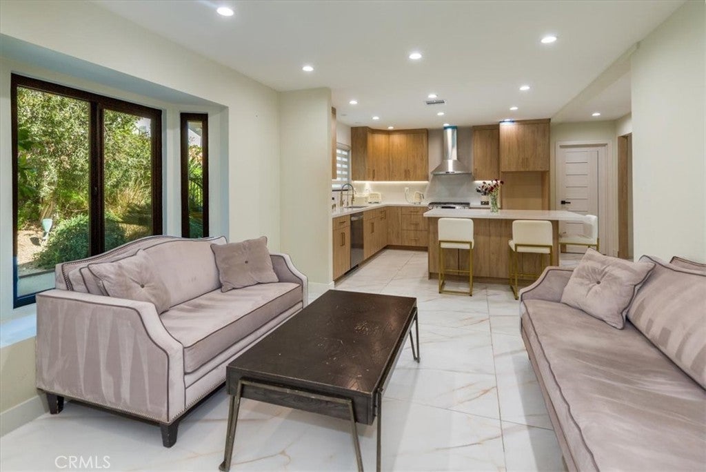 Experience refined living in this stunning, extensively remodeled residence in the prestigious Knollwood Estates. Perfectly positioned on a sprawling corner lot, the property offers private gate access to the Golf course. From the moment you arrive, you will be captivated with the impressive curb appeal and the inviting charm of a true entertainer’s estate, featuring a modern open layout. Inside, you’ll find a beautifully designed family room with a designer fireplace, a formal living room with sliding doors opening to the serene backyard, and an elegant formal dining room ideal for hosting. At the heart of the home is a designer chef’s kitchen featuring quartz countertops and backsplash, stainless steel appliances, and custom cabinetry. Adjacent to the kitchen is a generous dining area and pantry, previously the fourth bedroom, which can easily be converted back or used as flexible living space. Upstairs, the home offers three spacious bedrooms, including an oversized primary suite w/custom walk-in closet, luxuriously updated bathroom w/dual vanities. All bathrooms throughout the home have been beautifully updated. Additional upgrades include new wood flooring throughout, recessed lighting, copper plumbing, upgraded windows, and brand new doors, enhancing both style and comfort. Upgrades completed between 2024–2025. Step outside to your private backyard oasis, where resort-style living awaits. Enjoy a sparkling pool, covered patio, lush grassy areas, multiple outdoor entertaining spaces, and built-in BBQ area perfect for relaxing or hosting gatherings. The property also features an oversized driveway with potential RV access, ample parking, and an attached two-car garage with direct entry. Enjoy the perfect blend of privacy, luxury, and golf course living in prestigious Knollwood Estates !