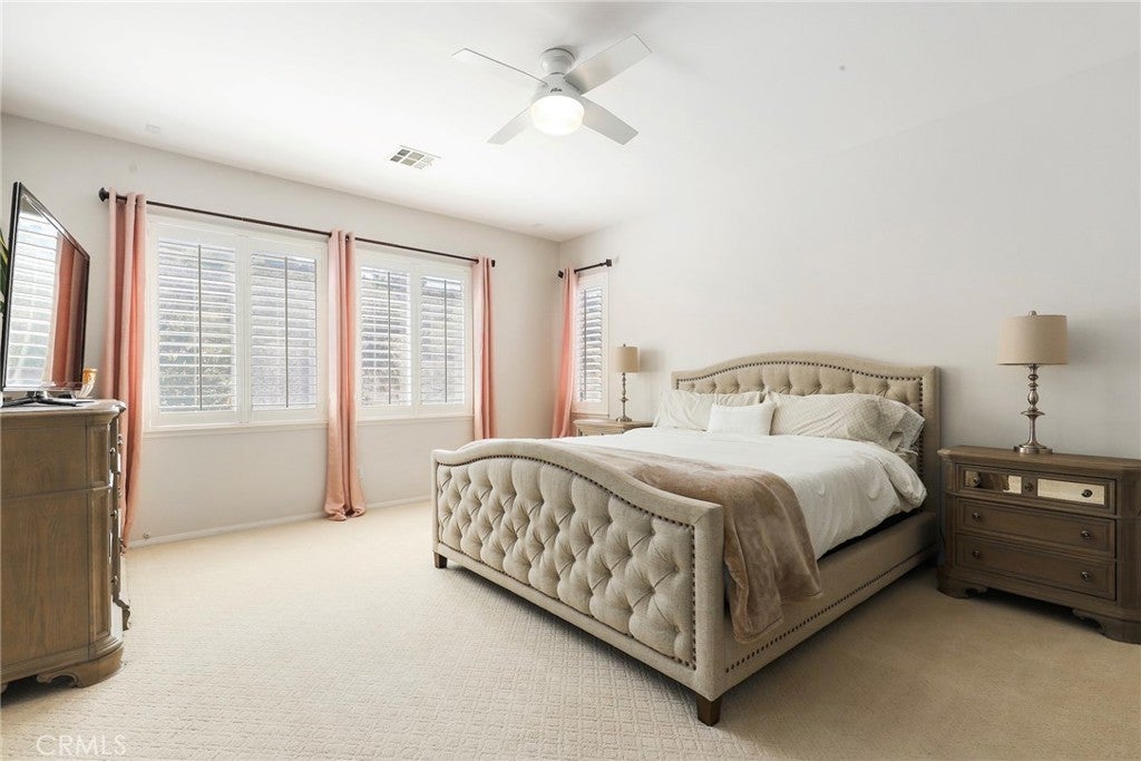 Welcome Home to 14450 Laurel Lane, a beautifully updated home in the Loretto Alterra at Serenata community. Tucked away far behind the gates, mother nature is your backyard neighbor. Step inside to soaring ceilings where natural light creates warmth and illuminates the beautiful wood floors. The home's ground floor reveals a proper living room, a dining room, a family room with a fireplace off the chef's kitchen, and a full bedroom and bathroom for guests or extended visits. The kitchen has been modernized with new quartz countertops, an updated sink, and stainless-steel appliances, while all upstairs windows feature custom plantation shutters. Outside, the backyard has been enhanced with professionally designed hardscaping, offering a low-maintenance space to enjoy the serene surroundings, and a large side yard provides ample space for storage or a dog run. The tandem garage area offers flexibility, easily transformed into a home office, gym, or additional storage room. An Electric Vehicle charger has been installed for convenience, and the newer garage door adds both functionality and curb appeal. With no neighbors behind the home, you can enjoy more privacy and the natural beauty surrounding the property, all within the gates of Loretto Alterra at Serenata in Moorpark. Gated, Painted, Privacy, call and tour.