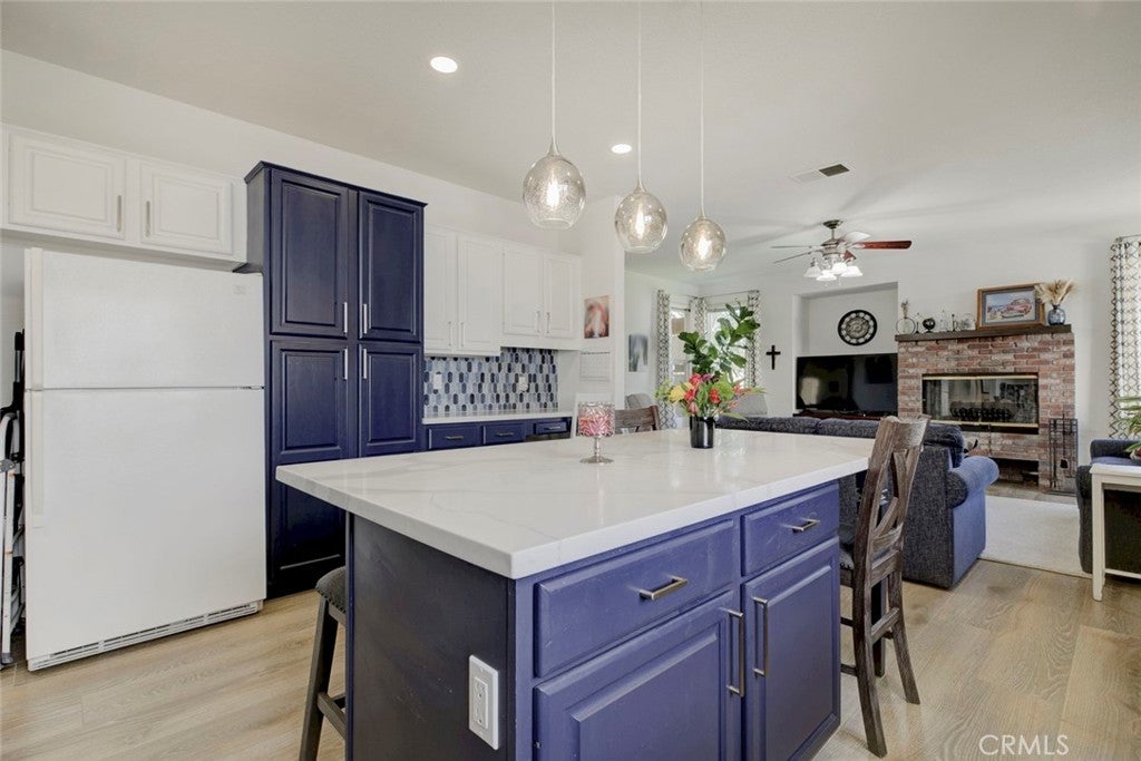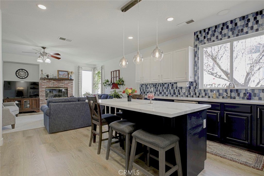 Charming Honeybee Lane home featuring paid-off solar, a 3-car garage, and an oversized parking pad (about 35' x 10') —perfect for a motorhome or additional vehicles. Situated on a spacious 9,689 sq ft lot, this property offers great curb appeal with a welcoming front porch and a large covered patio for easy indoor-outdoor living. As you enter the home, you’re greeted by a flexible space to your right—ideal as an office or optional 4th bedroom. The floor plan then opens into a light-filled living room with expansive windows overlooking the backyard. The open-concept layout flows seamlessly into the family room and a recently renovated cooks kitchen with a large island and views of a beautiful cherry tree. Everywhere you look, there is something pleasant to see. This home offers 3 bedrooms plus an office OR optional 4th bedroom. The primary suite includes an en-suite bath, generous closets, and sliding glass doors to the backyard. Secondary bedrooms are well-sized. Additional upgrades include updated HVAC, newer flooring (tile that looks like wood - AMAZING), newer paint, updated and charming kitchen, and bathrooms. Approximately 1,885 sq ft. Move-in ready with space, flexibility, and comfort. Come home to this great property in a fantastic neighborhood!