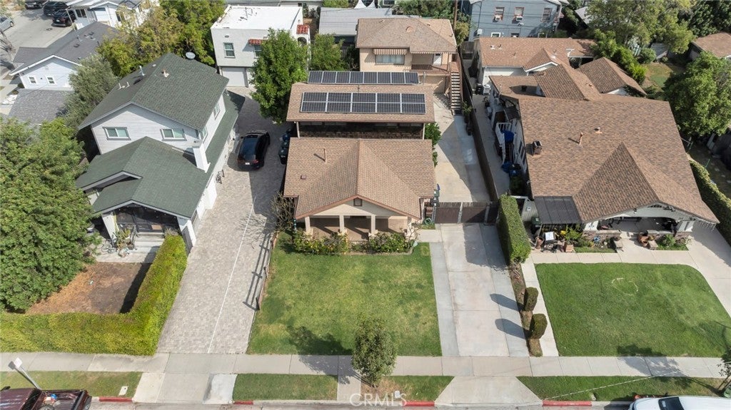 Legal duplex in prime Glendale location featuring two separate structures on one lot, ideal for residential income or multi-unit investment, zoned GLR4YY. The front house offers 2 bedrooms and 2 baths with potential to convert to a 3-bedroom layout, increasing rental value. An attached bonus/storage room (converted from a 1-car garage) adds functional space. The rear structure includes a 3-car garage with a 1-bedroom, 1-bath unit above—well-suited for additional rental income. The property includes a large concrete driveway with ample on-site parking, a fenced yard, and a fully owned solar system to help reduce operating expenses. This property presents a strong opportunity for investors seeking dual-income potential, owner-user flexibility (live in one, rent the other), and possible value-add or expansion options for additional units (buyer to verify).