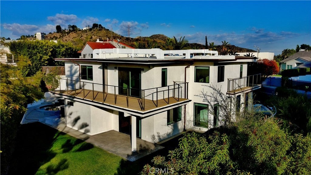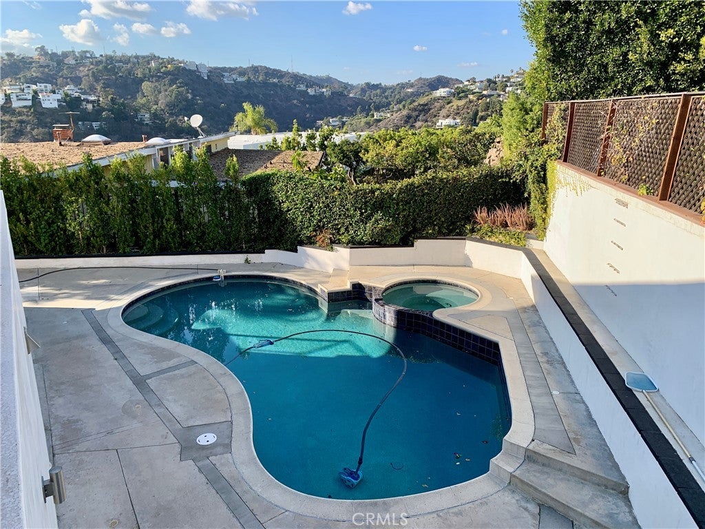 Experience the breathtaking beauty of this newly remodeled Contemporary/Modern home in Mt. Olympus! This exclusive, gated sanctuary boasts 3 bedrooms and 4 bathrooms across two light-filled stories. Hardwood floors throughout, a formal dining room, and a living room complete with a cozy fireplace make this home perfect for entertaining and relaxation. The living room opens up to a lush, green yard with towering trees and a fragrant flower garden, creating a peaceful and serene atmosphere. The spacious modern kitchen, complete with a breakfast bar, opens to a warm and inviting den. Upstairs, three spacious bedroom suites await, with the main bedroom offering spectacular Century City and Ocean views and an oversized patio. The backyard is an unparalleled oasis, with a very private wrap-around area featuring a grassy lawn, pool, and spa, offering panoramic views of the surrounding area. Don't hesitate to claim this unique and beautiful home as yours!