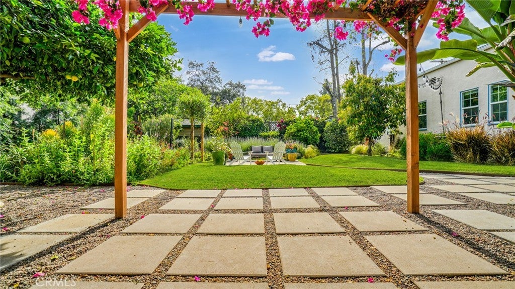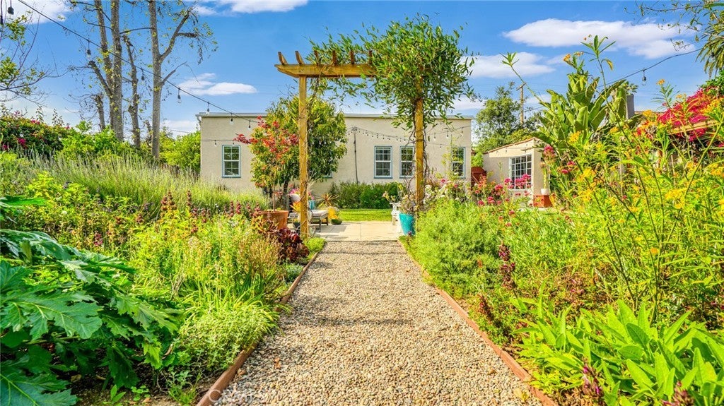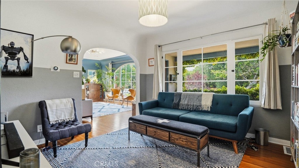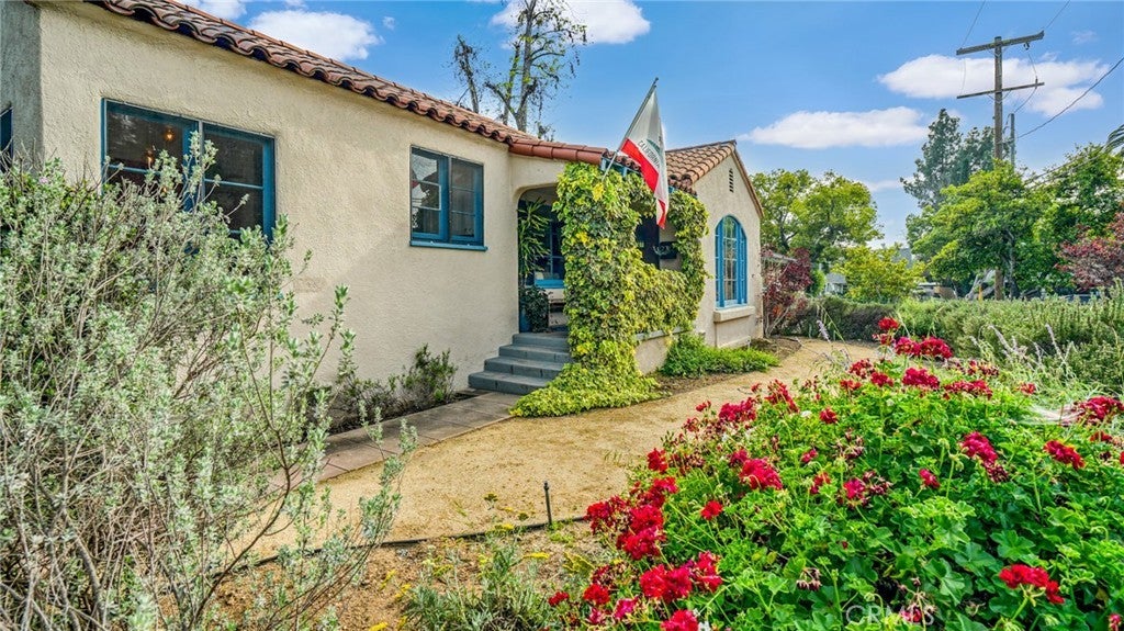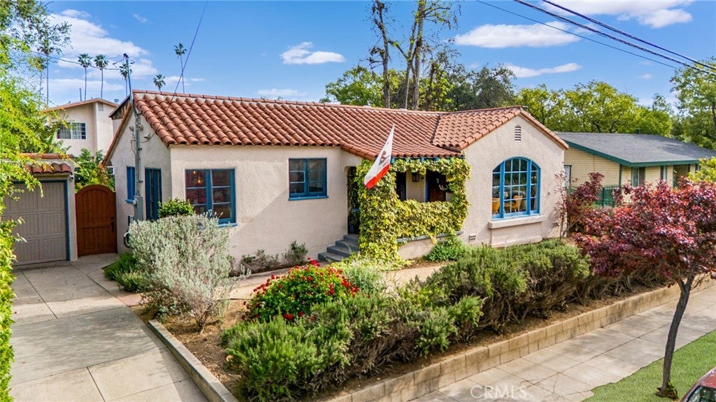 Timeless Pasadena charm meets modern upgrades in this gorgeous single-story home featuring abundant natural light, original hardwood floors, and classic Spanish-style details including arches and character windows. Offering 3 light-filled bedrooms and 2 fully remodeled bathrooms, the home blends original character with thoughtful, high-quality improvements throughout. The living room showcases a classic arched picture window, built-ins, and a fireplace highlighting a coveted Claycraft tile piece, set above the hearth. You then flow seamlessly into a beautifully updated kitchen with new Quartz countertops, stainless steel appliance suite, stunning tile work, ample storage and a cozy eat-in breakfast nook with wrap around bench seating and chic wallpaper accent wall. The garage has been transformed into a 200 sq ft garden office with added storage and double French doors creating a flexible space for work or creative use. The fully re-landscaped backyard features a bougainvillea covered pergola, mature fruit trees, manicured California native plants, new irrigation system, and multiple areas to relax or entertain. Recent upgrades include all new electrical and plumbing, a brand new 200 AMP panel, tankless water heater, and a new heat pump HVAC system with updated ductwork and registers. Chandeliers and recessed lighting enhance every room, while new double-paned windows in all bedrooms improve comfort and efficiency. Additional improvements include a new roof over the rear portion of the home, new attic insulation, a WiFi-controlled attic fan, and an EV charger. Conveniently located near shops, groceries, Old Town Pasadena, and the Rose Bowl, this home offers the perfect blend of character, comfort, and modern living.