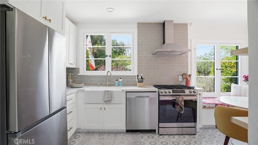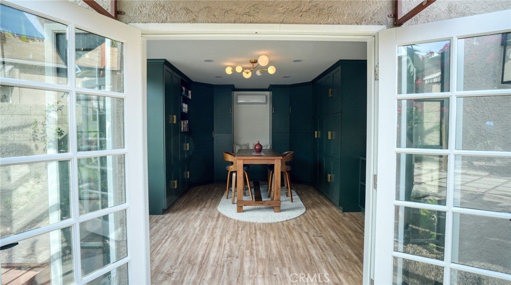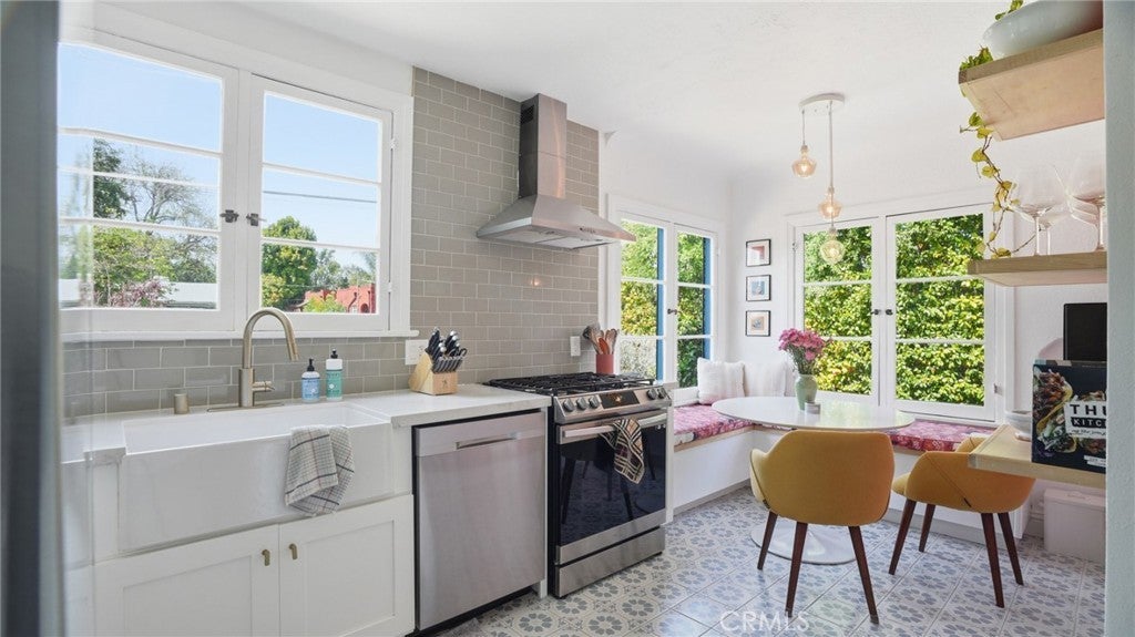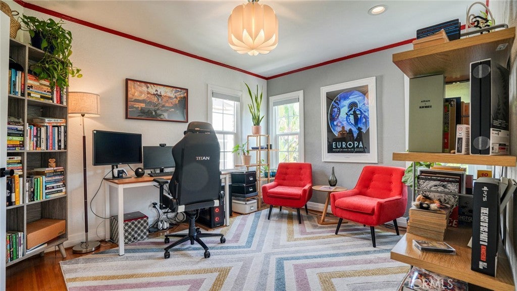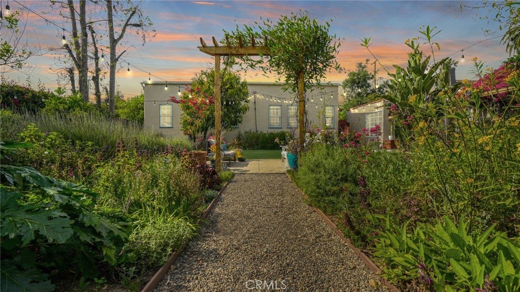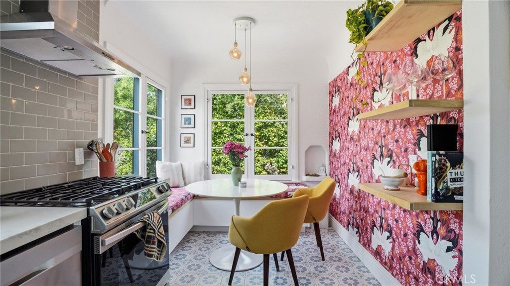 Timeless Pasadena charm meets modern upgrades in this gorgeous single-story home featuring abundant natural light, original hardwood floors, and classic Spanish-style details including arches and character windows. Offering 3 light-filled bedrooms and 2 fully remodeled bathrooms, the home blends original character with thoughtful, high-quality improvements throughout. The living room showcases a classic arched picture window, built-ins, and a fireplace highlighting a coveted Claycraft tile piece, set above the hearth. You then flow seamlessly into a beautifully updated kitchen with new Quartz countertops, stainless steel appliance suite, stunning tile work, ample storage and a cozy eat-in breakfast nook with wrap around bench seating and chic wallpaper accent wall. The garage has been transformed into a 200 sq ft garden office with added storage and double French doors creating a flexible space for work or creative use. The fully re-landscaped backyard features a bougainvillea covered pergola, mature fruit trees, manicured California native plants, new irrigation system, and multiple areas to relax or entertain. Recent upgrades include all new electrical and plumbing, a brand new 200 AMP panel, tankless water heater, and a new heat pump HVAC system with updated ductwork and registers. Chandeliers and recessed lighting enhance every room, while new double-paned windows in all bedrooms improve comfort and efficiency. Additional improvements include a new roof over the rear portion of the home, new attic insulation, a WiFi-controlled attic fan, and an EV charger. Conveniently located near shops, groceries, Old Town Pasadena, and the Rose Bowl, this home offers the perfect blend of character, comfort, and modern living.