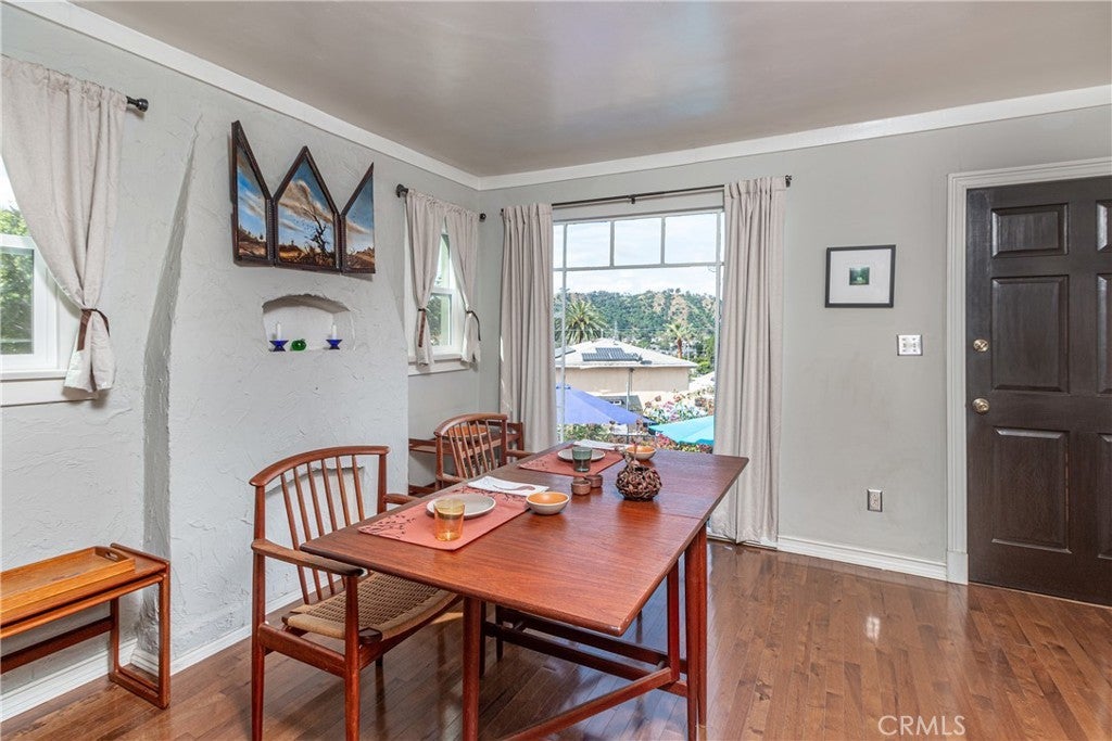 ENCHANTING MOUNT WASHINGTON SPANISH BUNGALOW. You’ll be charmed when you walk up the new and colorful tile steps to this inviting 2-bedroom/1-bath home. A stunning bougainvillea lends shade and privacy to the front yard and a peaceful patio. Crossing the threshold brings you to an airy open living space, with Spanish period details: Cove ceilings, arches, and a unique mock fireplace. Gorgeous and hard-wearing hickory hardwood floors stretch from living room to kitchen to hallway, and the brand new double-pane windows pour in natural light and highlight the striking views. All cooled and warmed by central air. Find loads of storage and abundant counter-space in the custom oak kitchen, with vintage stove and tiles and a hideaway washer/dryer. The main bedroom is a relaxing retreat, and the second bedroom - with a charming window-seat – can also convert to a studio, or a home office. Both bedrooms have good storage and custom bookshelves. But step outside and enter a paradise perfect for entertaining. The meandering backyard is beautifully landscaped, shaded by mature trees and fully fenced (perfect for dogs!). There are multiple gathering areas, including a BBQ terrace with koi pond, writer’s gazebo, workout pavilion, and fire pit. Birds and butterflies love the rose trees, palm, Mexican Marigold, and California Lilac. Imagine sipping summer cocktails as you take in gorgeous sunsets and spectacular views of downtown, Griffith Observatory, and Dodger Stadium fireworks. There’s even a small, detached garage, with electrical, and the home’s foundation is bolted. Come discover this alluring bungalow in exclusive Mount Washington, with welcoming neighbors and easy access to freeways and downtown. Shop or eat on thriving Cypress Avenue, visit Northeast LA's shops, restaurants, and galleries, then come home to your own peaceful oasis.