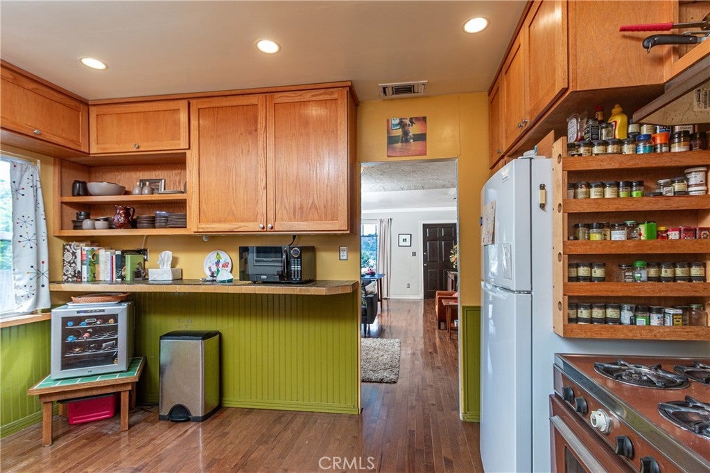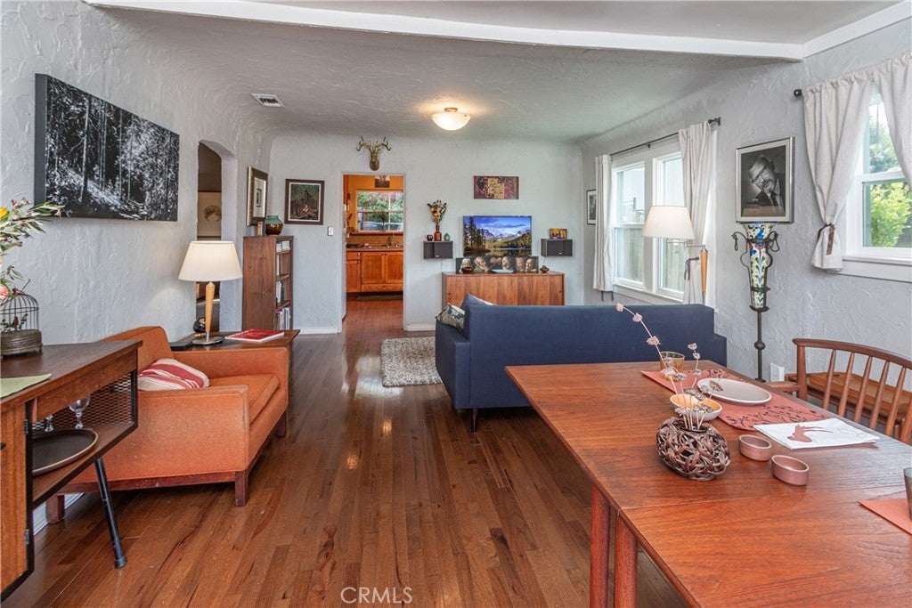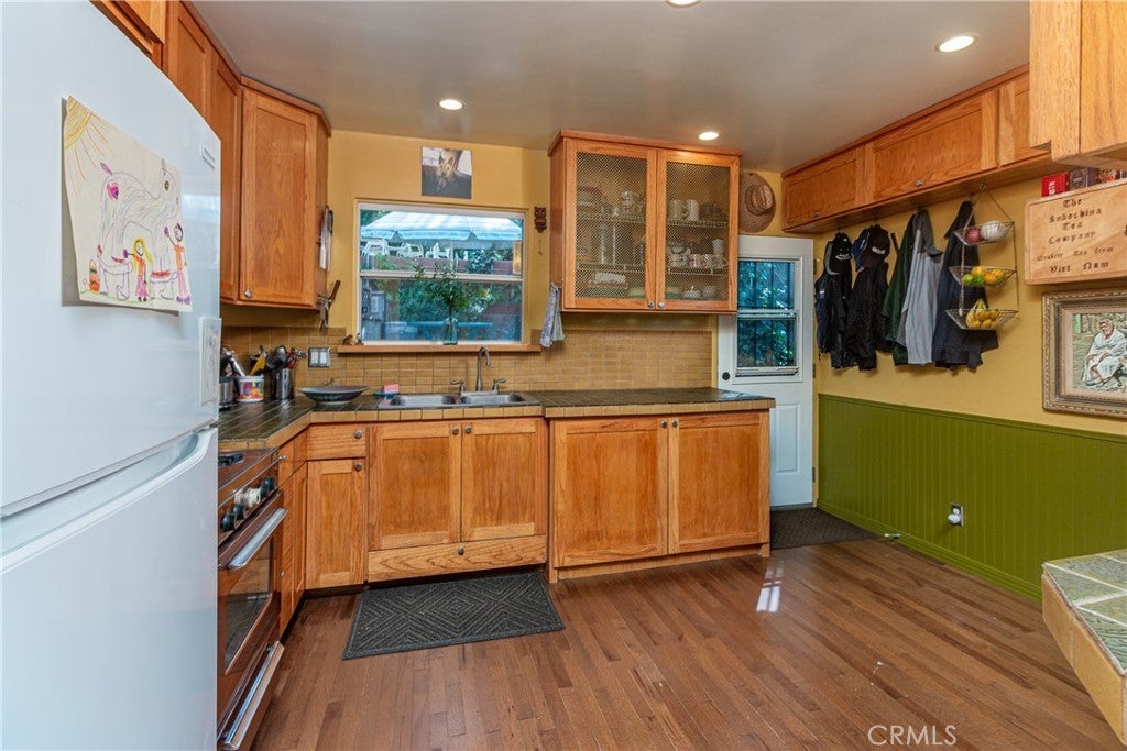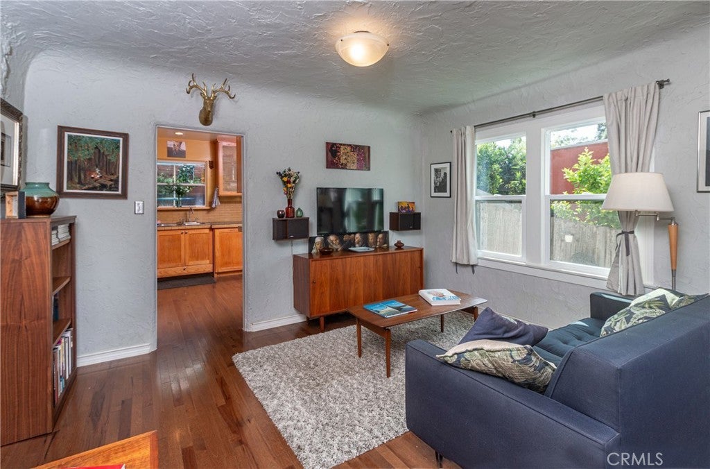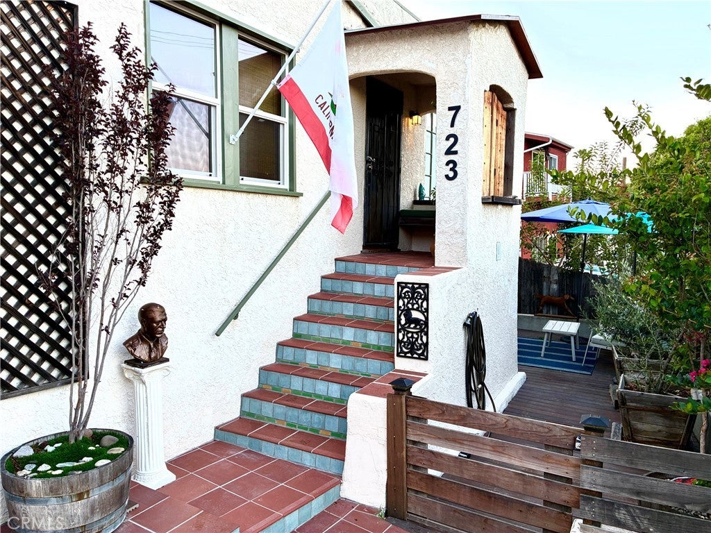 ENCHANTING MOUNT WASHINGTON SPANISH BUNGALOW. You’ll be charmed when you walk up the new and colorful tile steps to this inviting 2-bedroom/1-bath home. A stunning bougainvillea lends shade and privacy to the front yard and a peaceful patio. Crossing the threshold brings you to an airy open living space, with Spanish period details: Cove ceilings, arches, and a unique mock fireplace. Gorgeous and hard-wearing hickory hardwood floors stretch from living room to kitchen to hallway, and the brand new double-pane windows pour in natural light and highlight the striking views. All cooled and warmed by central air. Find loads of storage and abundant counter-space in the custom oak kitchen, with vintage stove and tiles and a hideaway washer/dryer. The main bedroom is a relaxing retreat, and the second bedroom - with a charming window-seat – can also convert to a studio, or a home office. Both bedrooms have good storage and custom bookshelves. But step outside and enter a paradise perfect for entertaining. The meandering backyard is beautifully landscaped, shaded by mature trees and fully fenced (perfect for dogs!). There are multiple gathering areas, including a BBQ terrace with koi pond, writer’s gazebo, workout pavilion, and fire pit. Birds and butterflies love the rose trees, palm, Mexican Marigold, and California Lilac. Imagine sipping summer cocktails as you take in gorgeous sunsets and spectacular views of downtown, Griffith Observatory, and Dodger Stadium fireworks. There’s even a small, detached garage, with electrical, and the home’s foundation is bolted. Come discover this alluring bungalow in exclusive Mount Washington, with welcoming neighbors and easy access to freeways and downtown. Shop or eat on thriving Cypress Avenue, visit Northeast LA's shops, restaurants, and galleries, then come home to your own peaceful oasis.