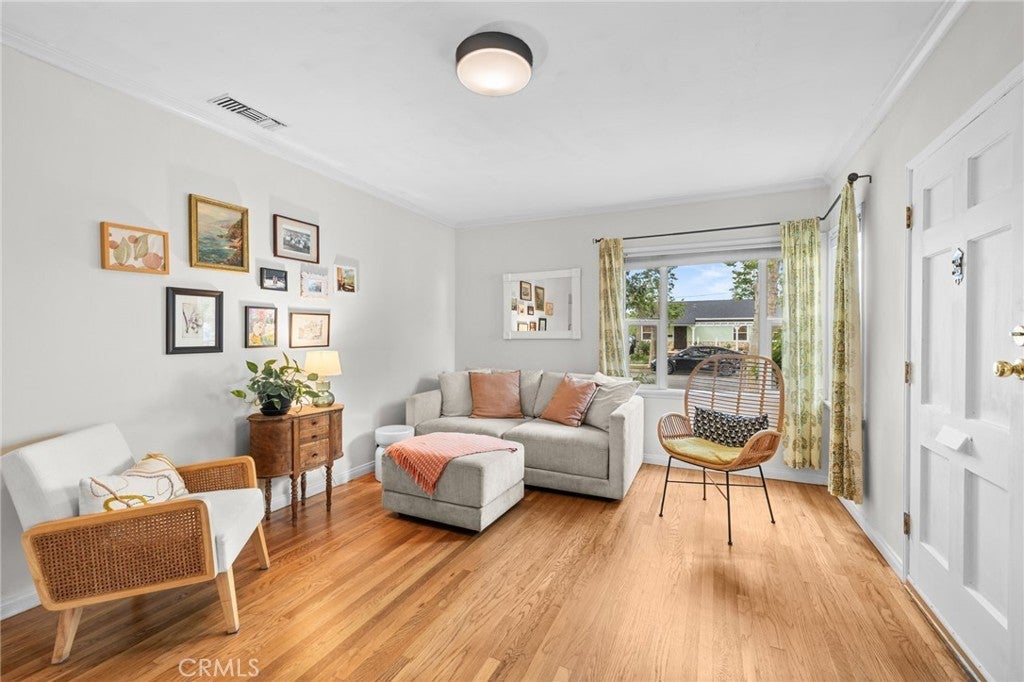 When everything comes together in just the right way, in just the right location, you know you’ve found something special. This inviting 3-bedroom home in the Rancho Adjacent area of Burbank offers a seamless blend of comfort, charm, and thoughtful updates. The spacious kitchen with natural granite countertops and limestone flooring, overlooks a lush, private backyard, creating an easy connection between indoor living and outdoor enjoyment. Oak floors run throughout, while the generously sized living room flows effortlessly into a perfectly proportioned dining area—giving the home an open, airy feel that lives larger than its footprint. The layout of the home is thoughtfully divided into a functional living area and a quiet sleeping area. The tastefully updated bathroom with natural limestone tiles, brings a refined, elevated feel with clean finishes and timeless style. Step outside and discover a true backyard retreat. The space is private and serene, with Italian Cypress trees lining the rear of the yard. The garden is a standout feature, offering an impressive variety of fruit trees including two Meyer lemon trees, a classic lemon tree, orange, pomegranate, fig, two young apple trees, peach trees, and mature olive trees. It’s a rare opportunity to enjoy your own collection of fruit trees right at home and a recently installed sprinkler system allows for easy maintenance. The large, covered patio invites you to relax and admire your own orchard. Entertain while enjoying your own private outdoor seating area year-round. You will soon forget the worries of the day and begin to feel like you took a vacation to get away from it all. A portion of the garage has been thoughtfully converted into a dedicated office with its own private entrance—ideal for working from home, creative pursuits, or a quiet retreat—while still maintaining functionality. Conveniently located near award-winning Burbank schools, a variety of stores, shops, coffee spots and restaurants, easy access to freeways, this home offers so much more than you would ever expect—all while maintaining the quality of life found in this quiet, beautifully tree-lined neighborhood. This is more than a house—it’s a place that just feels right.