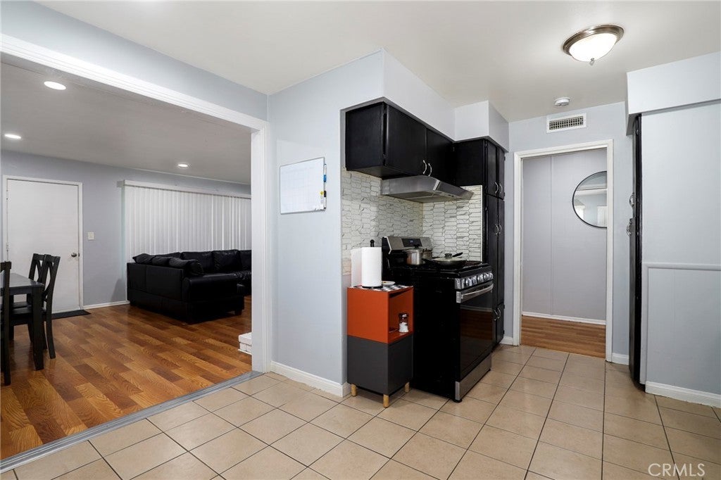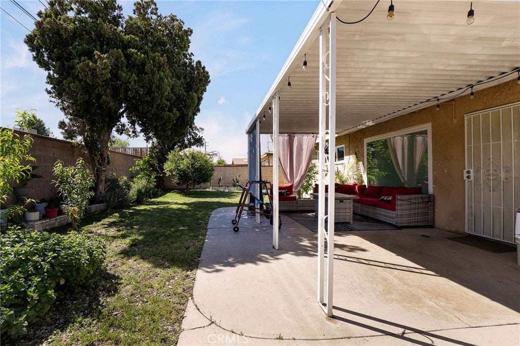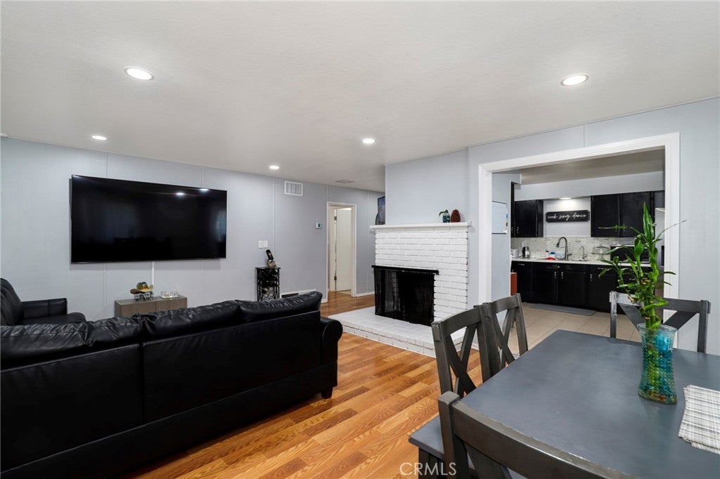 Charming 3-bedroom, 2-bath home featuring hardwood-style laminate flooring throughout and a spacious open kitchen with tile countertops and dining area. Enjoy year-round comfort with central A/C and heat (A/C under 2 years old), plus an updated electrical box and recessed lighting. The inviting living room showcases a large brick fireplace and opens to an oversized backyard—perfect for entertaining. Vaulted ceilings in the living room and primary bedroom add a bright, airy feel. Conveniently located near the 14 freeway, shopping, and dining.