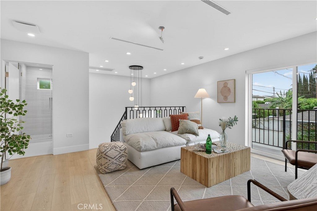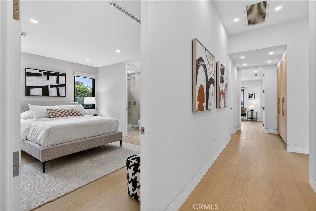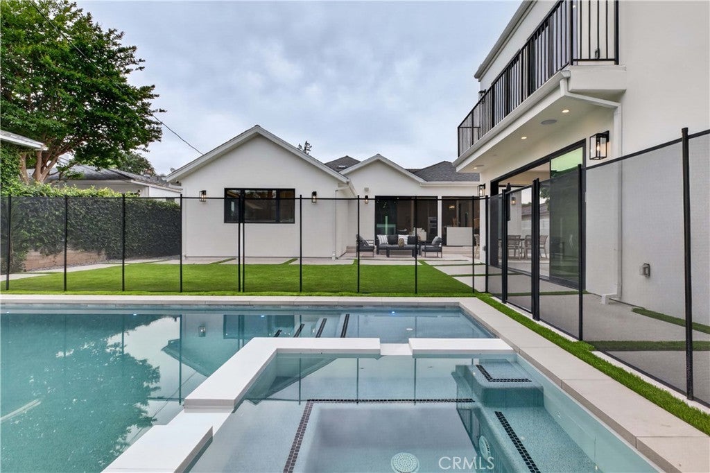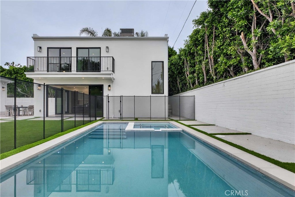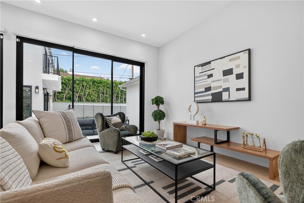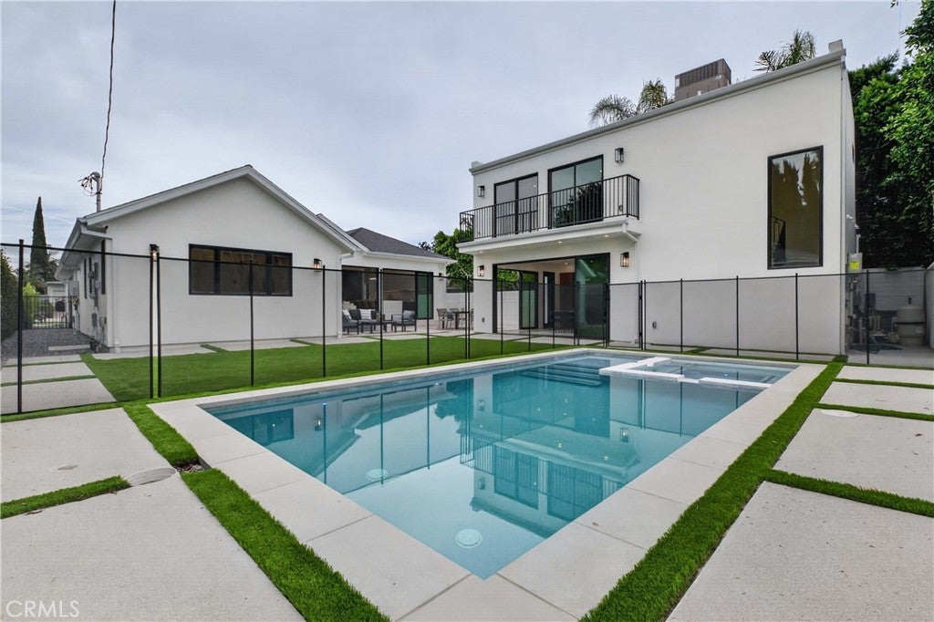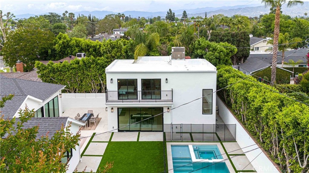 Prime Cul-de-Sac Residence in Toluca Woods Set behind gates on a quiet cul-de-sac, this exceptional residence blends timeless traditional architecture with refined modern interiors, offering over 2,700 sq ft in the main home and a fully realized 1,100 sq ft two-story ADU. The result is a rare combination of classic curb appeal and elevated contemporary living. The main home features 4 bedrooms and 4.5 baths, while the ADU includes its own bedroom, two full baths, and a dedicated pool-access half bath—bringing the total to 8 bathrooms across the property. The ADU is equally well-appointed, featuring floor-to-ceiling sliding glass doors and a private balcony with sweeping views of the Hollywood Hills and Universal Studios. Designed with scale and natural light in mind, the interiors are defined by soaring 10-foot ceilings and expansive floor-to-ceiling sliding glass doors, creating a seamless indoor-outdoor experience ideal for both entertaining and everyday living. A formal dining salon serves as a striking entertaining space, anchored by a fireplace and complemented by a wet bar. The chef’s kitchen is appointed with premium Bertazzoni appliances, bespoke cabinetry, curated designer finishes, and a built-in beverage center. The primary suite offers a private retreat with a vaulted ceiling, spa-caliber bath, custom walk-in wardrobe, and an integrated beverage cooler station. Smart home integration allows seamless control of lighting, fireplaces, climate systems, pool audio, and a whole-home Sonos sound system, supported by a comprehensive security camera system. The resort-style grounds feature a newly redesigned pool with Baja shelf and PebbleTec finish, creating an ideal setting for relaxation and entertaining. Additional highlights include Hansgrohe fixtures throughout, independent HVAC systems, gas/electric meters for the main residence and ADU, and a dedicated laundry room with premium Samsung appliances. Ideally located in the highly sought-after Toluca Woods enclave of Toluca Lake, the property offers rare privacy while remaining moments from Burbank’s entertainment studios. With effortless access to Downtown Los Angeles, Hollywood, and the Westside, it places world-class dining, culture, and industry centers within easy reach while maintaining a quiet residential setting.
