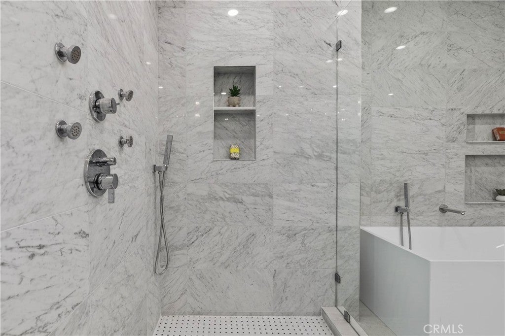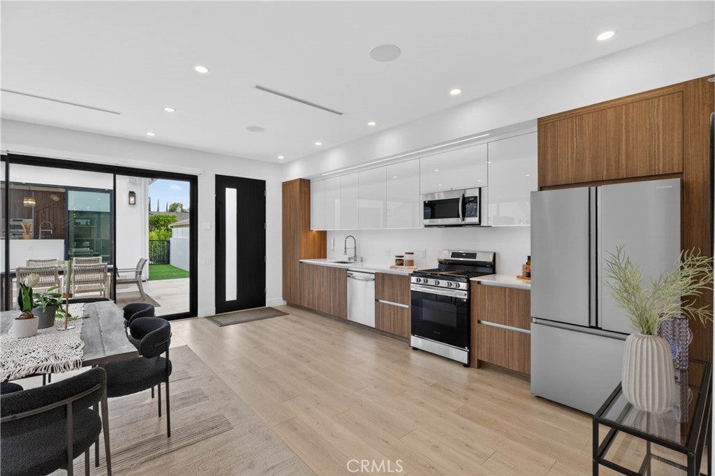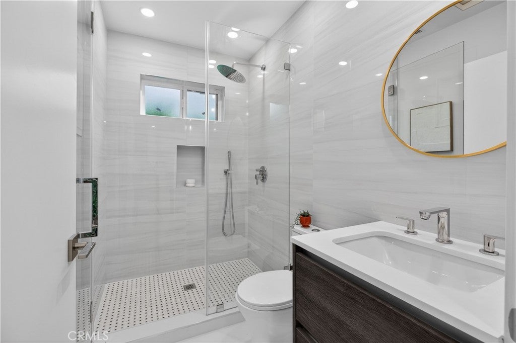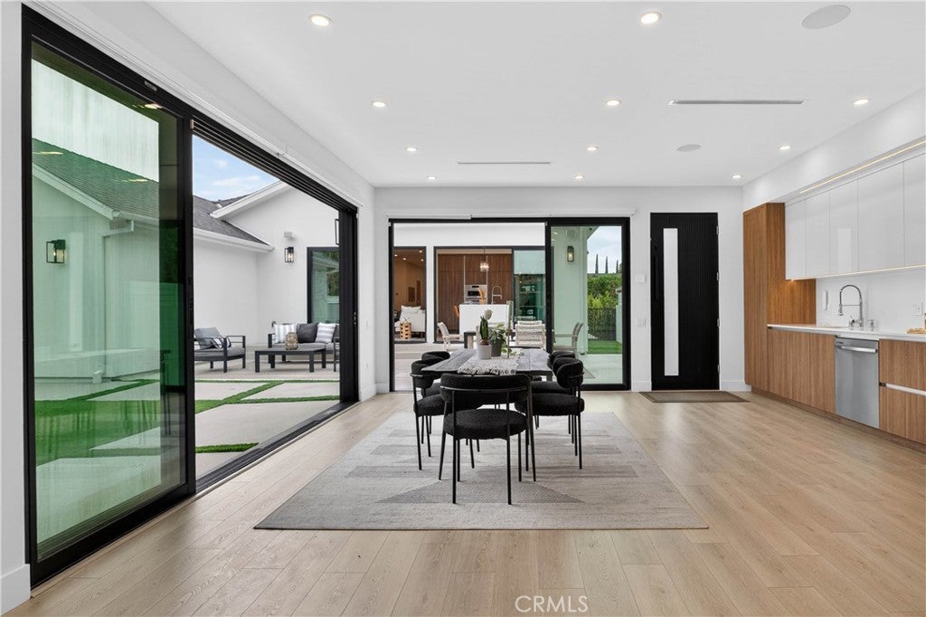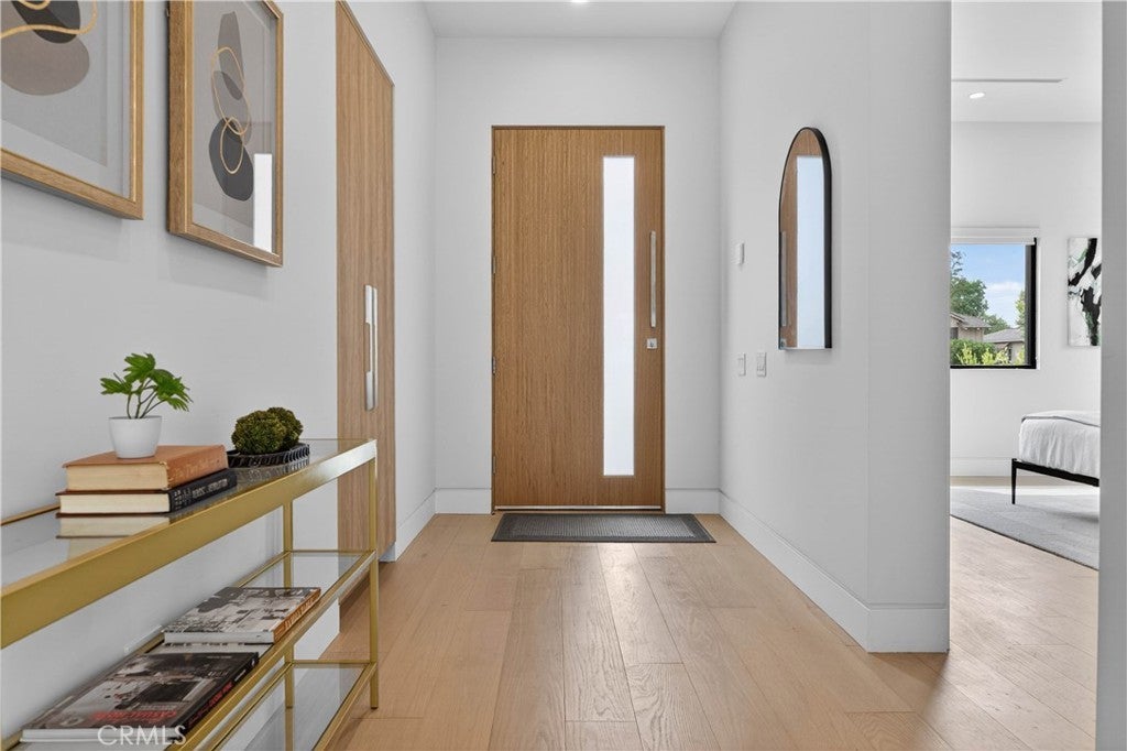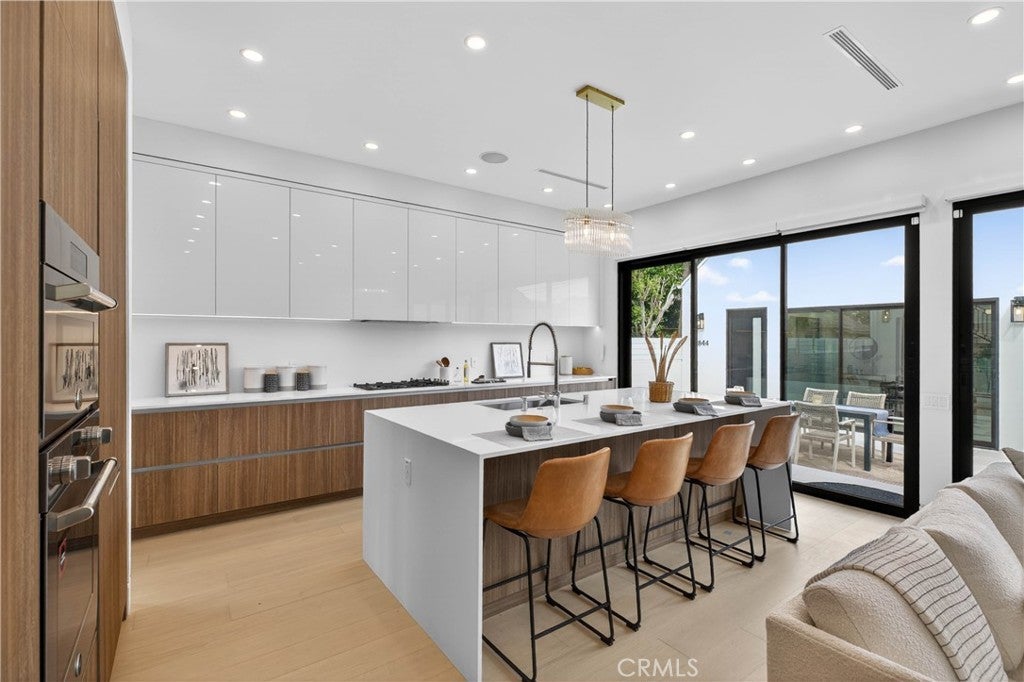 Prime Cul-de-Sac Residence in Toluca Woods Set behind gates on a quiet cul-de-sac, this exceptional residence blends timeless traditional architecture with refined modern interiors, offering over 2,700 sq ft in the main home and a fully realized 1,100 sq ft two-story ADU. The result is a rare combination of classic curb appeal and elevated contemporary living. The main home features 4 bedrooms and 4.5 baths, while the ADU includes its own bedroom, two full baths, and a dedicated pool-access half bath—bringing the total to 8 bathrooms across the property. The ADU is equally well-appointed, featuring floor-to-ceiling sliding glass doors and a private balcony with sweeping views of the Hollywood Hills and Universal Studios. Designed with scale and natural light in mind, the interiors are defined by soaring 10-foot ceilings and expansive floor-to-ceiling sliding glass doors, creating a seamless indoor-outdoor experience ideal for both entertaining and everyday living. A formal dining salon serves as a striking entertaining space, anchored by a fireplace and complemented by a wet bar. The chef’s kitchen is appointed with premium Bertazzoni appliances, bespoke cabinetry, curated designer finishes, and a built-in beverage center. The primary suite offers a private retreat with a vaulted ceiling, spa-caliber bath, custom walk-in wardrobe, and an integrated beverage cooler station. Smart home integration allows seamless control of lighting, fireplaces, climate systems, pool audio, and a whole-home Sonos sound system, supported by a comprehensive security camera system. The resort-style grounds feature a newly redesigned pool with Baja shelf and PebbleTec finish, creating an ideal setting for relaxation and entertaining. Additional highlights include Hansgrohe fixtures throughout, independent HVAC systems, gas/electric meters for the main residence and ADU, and a dedicated laundry room with premium Samsung appliances. Ideally located in the highly sought-after Toluca Woods enclave of Toluca Lake, the property offers rare privacy while remaining moments from Burbank’s entertainment studios. With effortless access to Downtown Los Angeles, Hollywood, and the Westside, it places world-class dining, culture, and industry centers within easy reach while maintaining a quiet residential setting.
