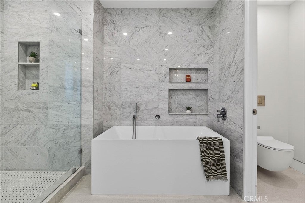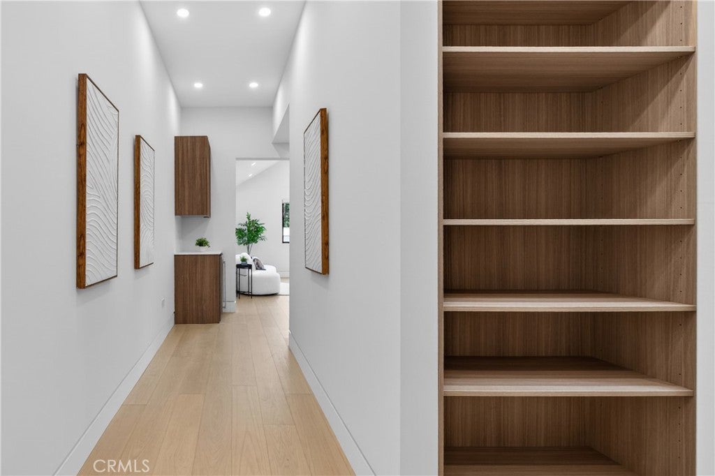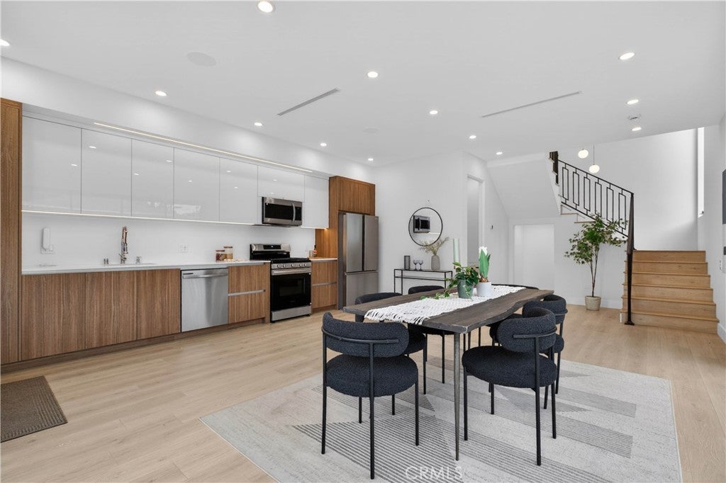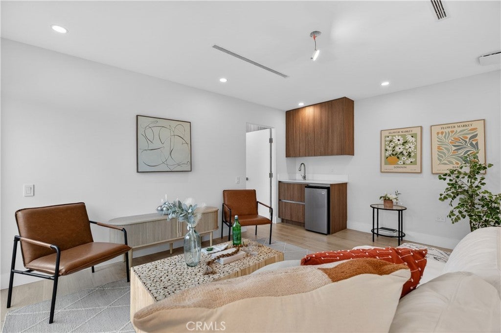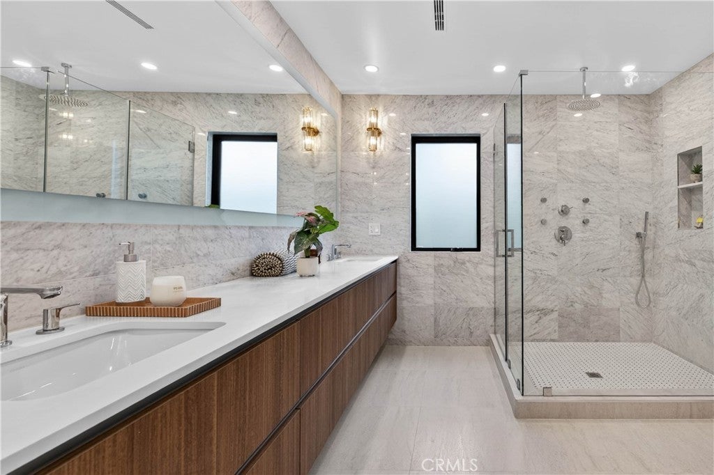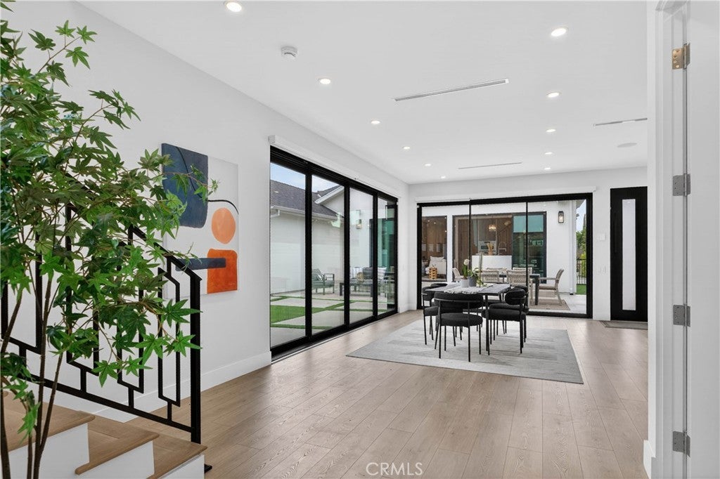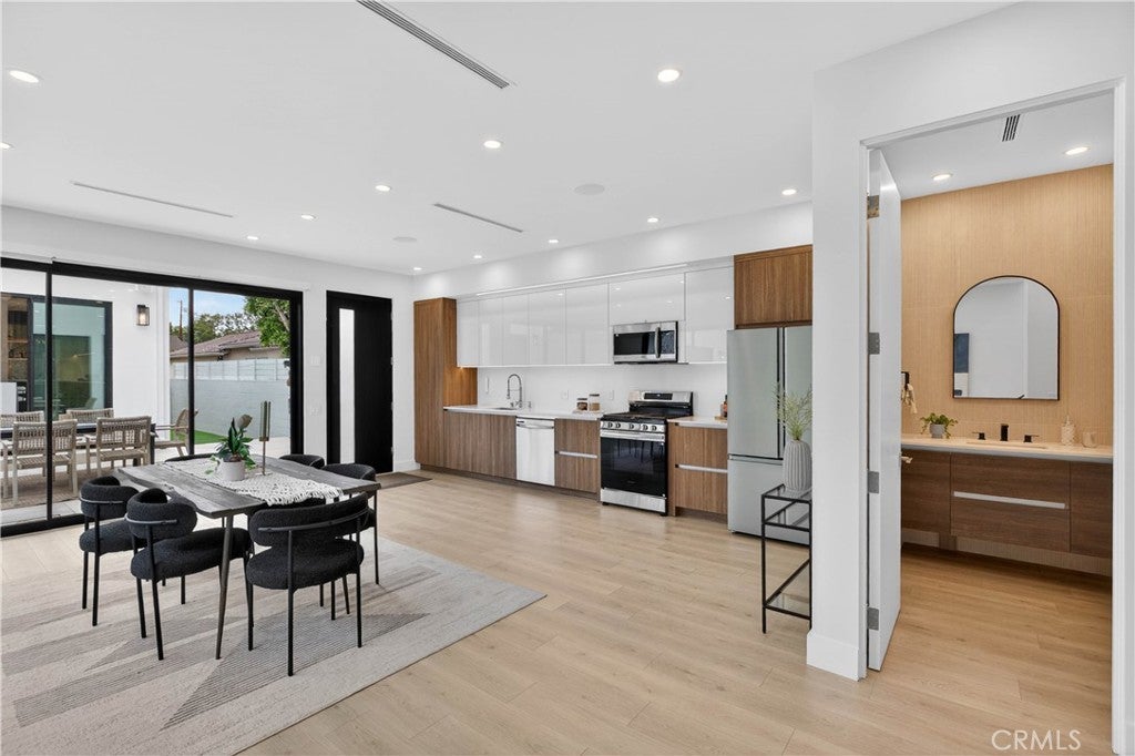 Prime Cul-de-Sac Residence in Toluca Woods Set behind gates on a quiet cul-de-sac, this exceptional residence blends timeless traditional architecture with refined modern interiors, offering over 2,700 sq ft in the main home and a fully realized 1,100 sq ft two-story ADU. The result is a rare combination of classic curb appeal and elevated contemporary living. The main home features 4 bedrooms and 4.5 baths, while the ADU includes its own bedroom, two full baths, and a dedicated pool-access half bath—bringing the total to 8 bathrooms across the property. The ADU is equally well-appointed, featuring floor-to-ceiling sliding glass doors and a private balcony with sweeping views of the Hollywood Hills and Universal Studios. Designed with scale and natural light in mind, the interiors are defined by soaring 10-foot ceilings and expansive floor-to-ceiling sliding glass doors, creating a seamless indoor-outdoor experience ideal for both entertaining and everyday living. A formal dining salon serves as a striking entertaining space, anchored by a fireplace and complemented by a wet bar. The chef’s kitchen is appointed with premium Bertazzoni appliances, bespoke cabinetry, curated designer finishes, and a built-in beverage center. The primary suite offers a private retreat with a vaulted ceiling, spa-caliber bath, custom walk-in wardrobe, and an integrated beverage cooler station. Smart home integration allows seamless control of lighting, fireplaces, climate systems, pool audio, and a whole-home Sonos sound system, supported by a comprehensive security camera system. The resort-style grounds feature a newly redesigned pool with Baja shelf and PebbleTec finish, creating an ideal setting for relaxation and entertaining. Additional highlights include Hansgrohe fixtures throughout, independent HVAC systems, gas/electric meters for the main residence and ADU, and a dedicated laundry room with premium Samsung appliances. Ideally located in the highly sought-after Toluca Woods enclave of Toluca Lake, the property offers rare privacy while remaining moments from Burbank’s entertainment studios. With effortless access to Downtown Los Angeles, Hollywood, and the Westside, it places world-class dining, culture, and industry centers within easy reach while maintaining a quiet residential setting.