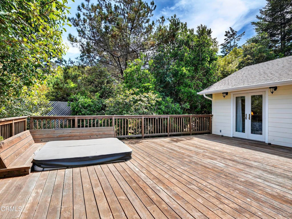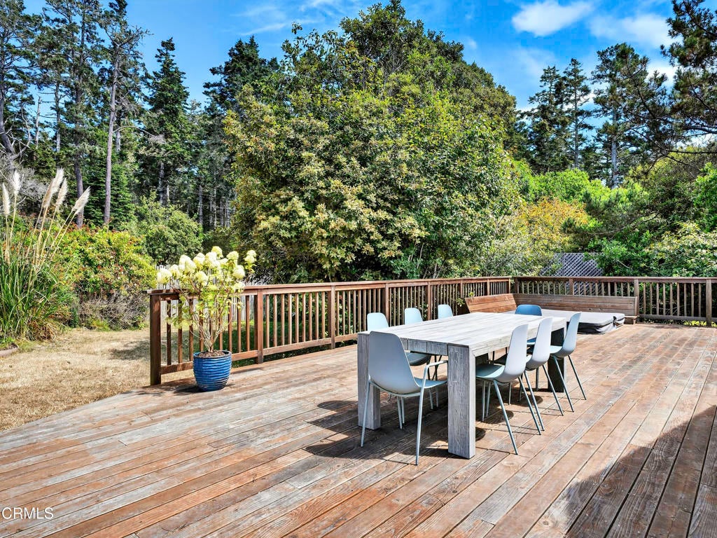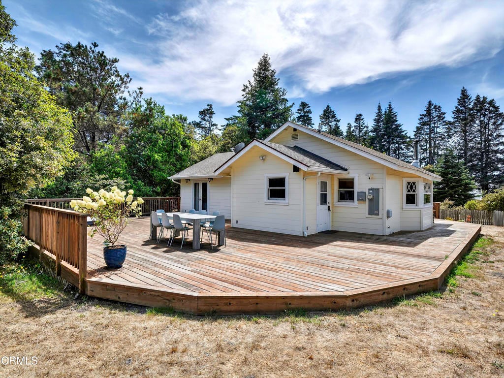 The Cottage Mendocino is nestled happily back from the bluff with ocean views wrapped in redwoods. This colorful 2-bedroom, 1-bath cottage makes a joyful first impression and has been completely renovated with an elegant rustic feel from the magazine-ready gourmet kitchen; to the re-purposed, wide-plank hardwood flooring; to the large picture windows that flood the rooms with bright, natural light. Add to this a wrap-around deck with a sunken spa; built-in indoor/outdoor sound system; and an outdoor area perfect for dining al fresco and you have the complete getaway package. The home and lush gardens are fully fenced and there is a detached 1-car garage. The cottage is a short jaunt to the historic Mendocino Village with restaurants, galleries, art center and quaint shops. Within minutes, you can be gathering driftwood on the beach, kayaking up Big River, or hiking through Russian Gulch State Park. This is a perfect place to switch off and relax while taking in the sounds of the crashing surf and breathtaking beauty of the north coast. The cottage is being sold fully furnished inside and out.
