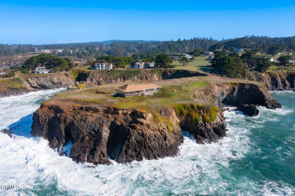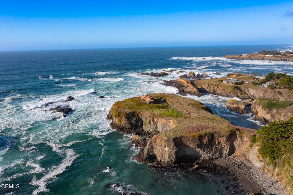 The Island House in Caspar, California. Likely the most rare and unique coastal home ever developed on the Mendocino Coast. The property is surrounded by the Sea on a Bluff above the water and connected to the mainland by an Iron Bridge. Built in circa 2018 this 1,709+- sqft, 1 bed, 2 bath coastal development marvel has gleaned the eye of sailors and captains since its inception. The residence is anchored in bedrock and offers a spacious wine cellar/basement and all of the modern high-end luxury touches that one would expect when surrounded by glass, rock and water. Rarely can one look back towards the safety of land from their home and see the radiant beam of a light house. This is a once in a lifetime opportunity to own and live on your own California Island!