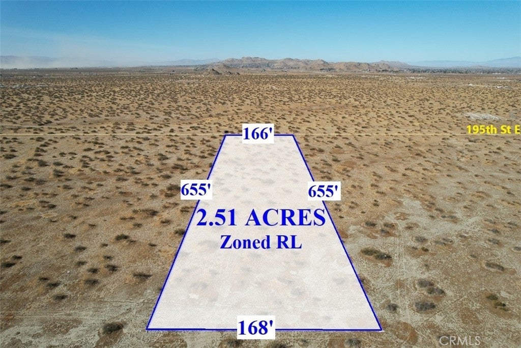 Exceptional opportunity to own 2.5 acres of land, zoned Rural living, local electricity nearby, a little over 2.5 acres in which to build your custom home or place a mobile home, barn for animals or toys. Enjoy mountain views and desertscape and sky full of stars at night. 1.5 miles to paved road on E Palmdale Blvd. to go to all amenities when needed. Google maps coordinate to property are: 34.597556, -117.781389, Wooden Stakes at corners of the lot, see showing instructions for estimated corners coordinates, Lines demarcating boundaries are approximate and not surveyed, buyer and buyer’s agent to verify utilities, zoning & exact boundary lines to satisfy yourselves with the property.