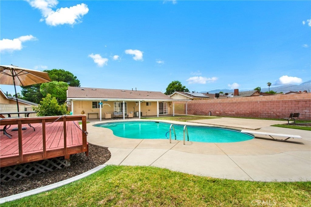 Single Story 4 bedroom 2 bath Pool home! Desirable Upland neighborhood with amazing Mountain View’s! Pride of ownership over the last 36 years. Spacious open living room with large windows. Cozy wood and gas burning fireplace. Bright dining room with French doors. Remodeled kitchen with new cabinets, granite countertops, pantry, lots of storage, window overlooking backyard and exterior door. An entertainers backyard has covered patio, in ground pool, sun deck, grass area, storage shed, avocado tree and lovely Mountain Views. 9880 sq/ft level lot provides Plenty of room to add an AUD or Jr. AUD if desired. RV or other recreational parking behind gate. Upgrades include newer roof, remodeled kitchen and baths, duel pane windows, French and sliding doors, exterior updated and painted, newer concrete driveway and wrought iron gates. Centrally located with easy access to 210 & 10 freeways, schools, colleges, churches, parks, public transit, and the Colonies Crossroads shopping dining complex. Home is walking distance to Foothill Knolls STEM Academy of Innovation, San Antonio Regional Hospital, medical offices, parks, shopping, dining and transportation. Welcome home to Upland the City of Gracious Living at the foothills of the San Gabriel Mountains!