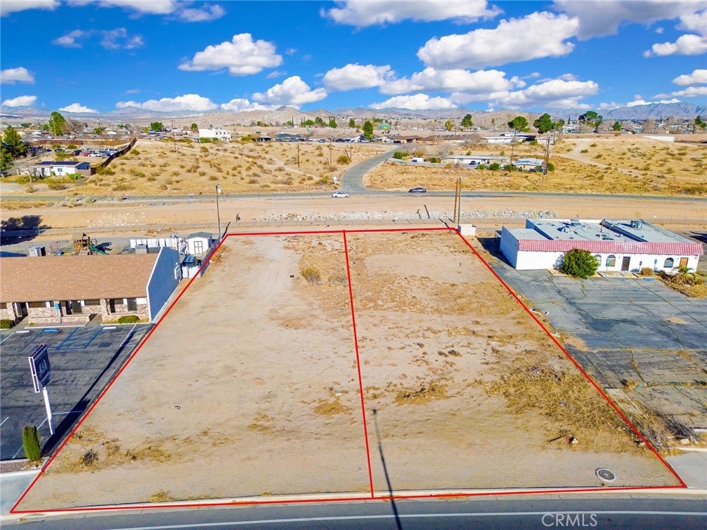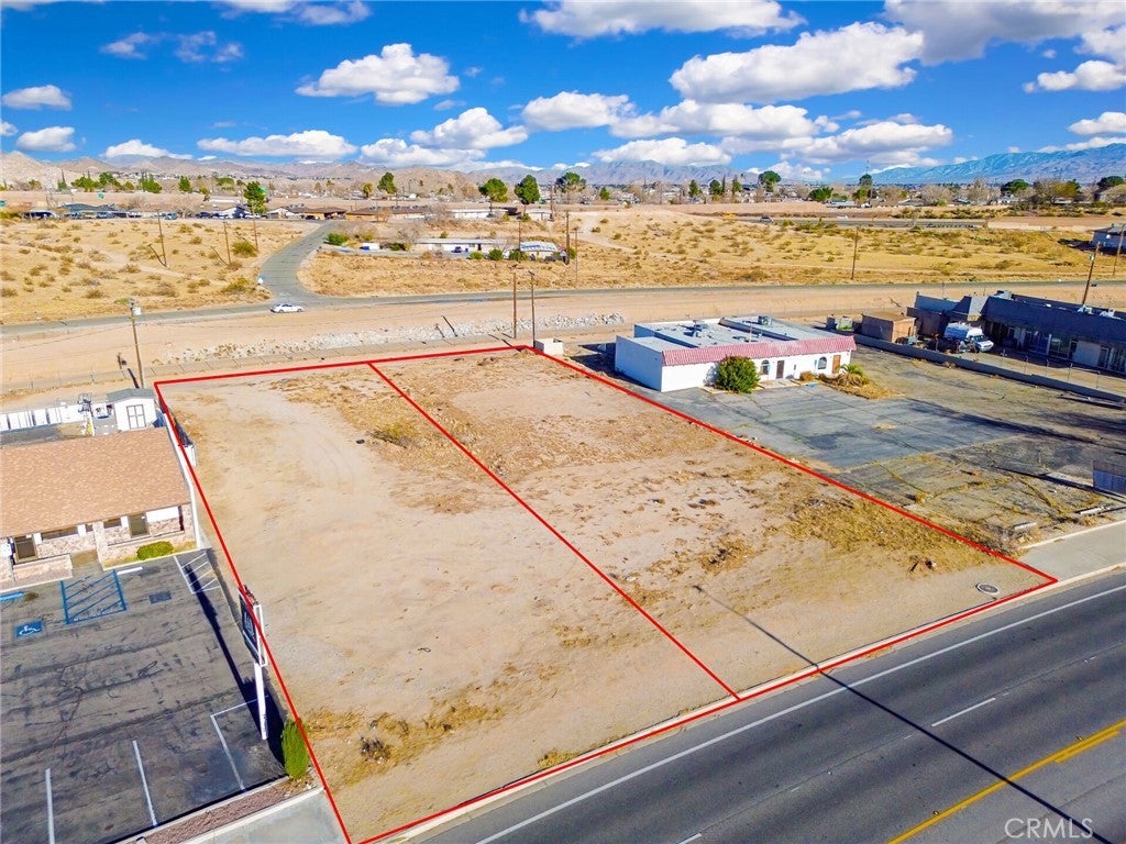 TWO LOTS next to each other are zoned C-1 (Commercial) and are for sale in an established commercial area. This location is right next to the freeway and is well established with other commercial operations near by. Interstate 15 freeway access is ideal. Topography is generally flat. City of Victorville, San Bernardino County. Seller has not investigated combining the lots, however it appears others in the area have done so for larger buildings and developments. Other easy access is Hwy 395 to the West, I-40 to the N. Check out the location, very central with great freeway access, as well as highway and other thoroughfares. Utilities are already established in the area with an existing commercial building next door. Curb and gutter already there, city of Victorville water available. Utility easement at rear, does not impact use or access of properties - easily visible see overhead map. Low tax rate in this area also.