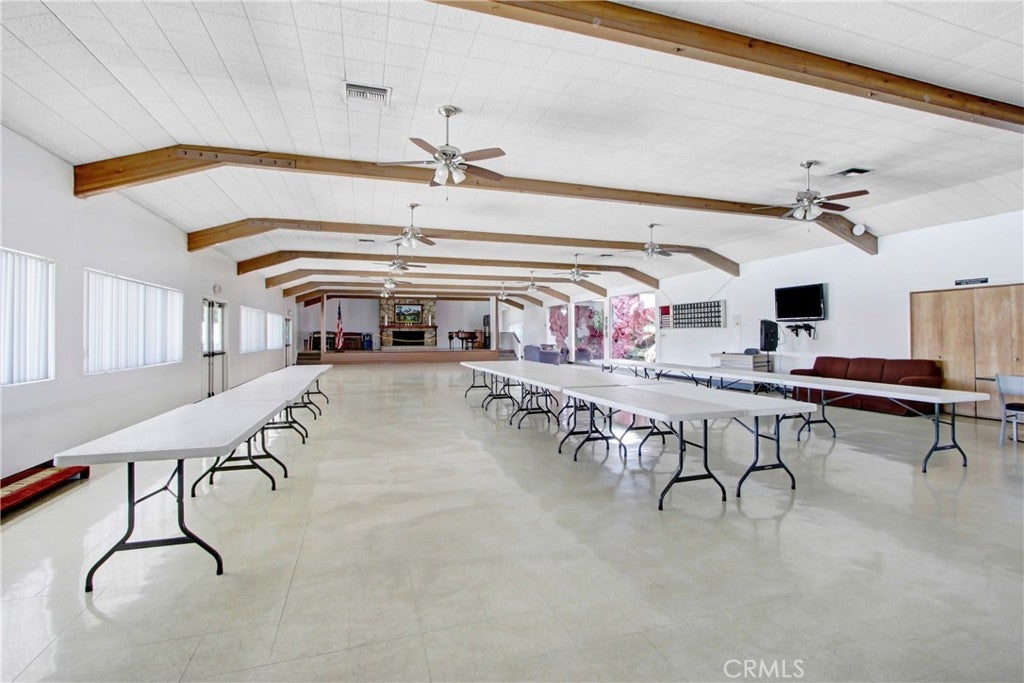 Beautiful 2-Bedroom Skyline Double-Wide Home in The Fountains – A Premier 55+ Community! This charming home includes a versatile third room that can be used as a bedroom, den, craft room, or home office. Ideally located on a corner lot, it boasts a spacious, lengthwise covered porch with a north-facing view of the stunning San Gabriel Mountains. Lovingly maintained and in move-in ready (turnkey) condition, the home offers an open and airy floor plan with high ceilings. The large living room features a gas fireplace for cozy evenings, and a bright skylight fills the space with natural light. A sunroom/sitting area with plantation shutters and three oversized windows enhances the charm. Additional highlights include: Dining room and den/office with elegant French doors Kitchen with Corian countertops, wood cabinetry, and ample storage Wood-style laminate flooring throughout, with carpeted bedrooms Ceiling fans in multiple rooms Guest bathroom with walk-in shower Primary bathroom with a Safe Step walk-in spa tub and skylight Dedicated laundry room with access to back stairs, carport, and storage shed with shelving Low-maintenance turf yard The Fountains is a beautifully maintained, gated 55+ community with fantastic amenities, including a clubhouse with banquet hall, full kitchen, swimming pool, spa, shuffleboard, gym, dog park, and more. Enjoy a vibrant social calendar with weekly events, holiday celebrations, and community gatherings. Additional Details: The ENTIRE PARK is being repaved in June 2026 Gated RV parking available 360° picture tour available! Home is on the local property tax roll New space rent: $1,520/month (Seller will pay 3 months of rent to new buyer!)