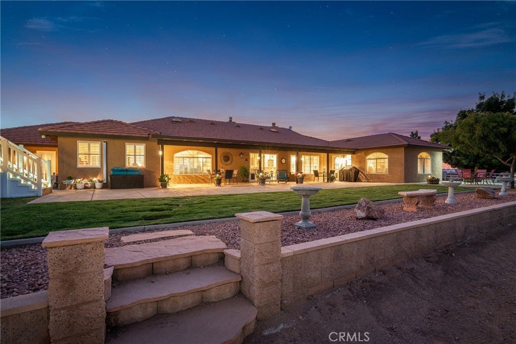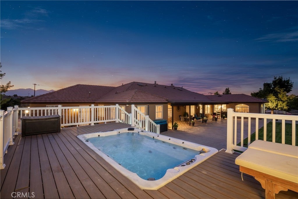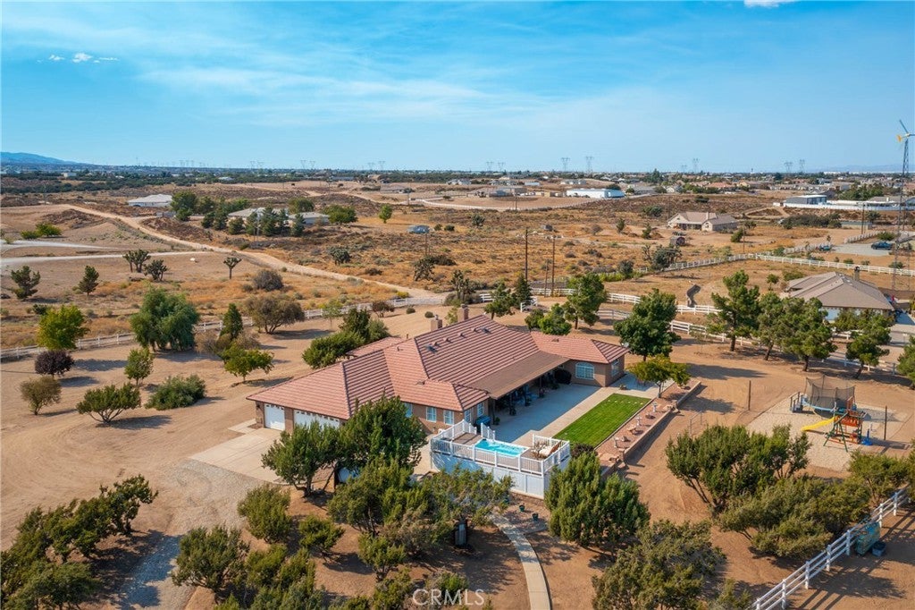 Must see home with amazing views! Come see this beautiful ranch style horse property located on over 2 acres of land. This home features 4 bedrooms, 2bathrooms, with 2 additional bonus rooms that can be used as bedrooms or offices. The interior floor plan is great for entertaining with a remodeled kitchen that opens to the family room and has a nice view of the covered patio. The home features dual master suites, one with a wood burning fireplace, and a split floor plan for multi generational families. There is a walk in pantry in the kitchen, a butler's pantry with extra storage, and a laundry room with room for 2 washers. The extra bedrooms are a good size and the 3 car garage is finished with built in cabinets and a tandem extra space for storage. Outside you will find the covered patio, swim spa with deck, volley ball court with kids play area, and 2 sheds, each on a slab foundation. The property has a 500 gallon propane tank, as well as a new electric heating and AC system for the main portion of the home. The spacious property provides views of the desert and surrounding mountains with breathtaking sunsets.