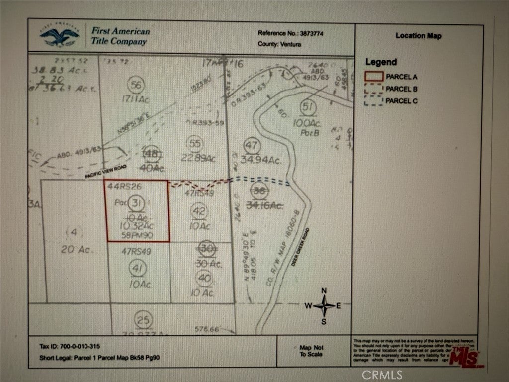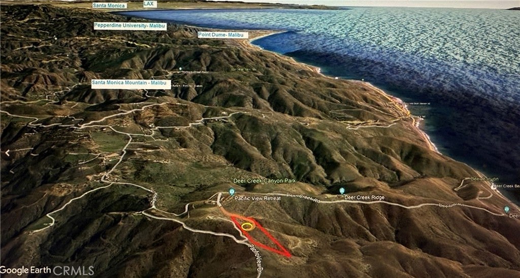 A Spectacular panoramic ocean view property just 2.5 miles from PCH with 0.5 mile of paved road ( Deer Creek Road), It's ready to build your dream house. The county will allow a 10,000 Sq foot main house with possible additional ADU. Must see!!!