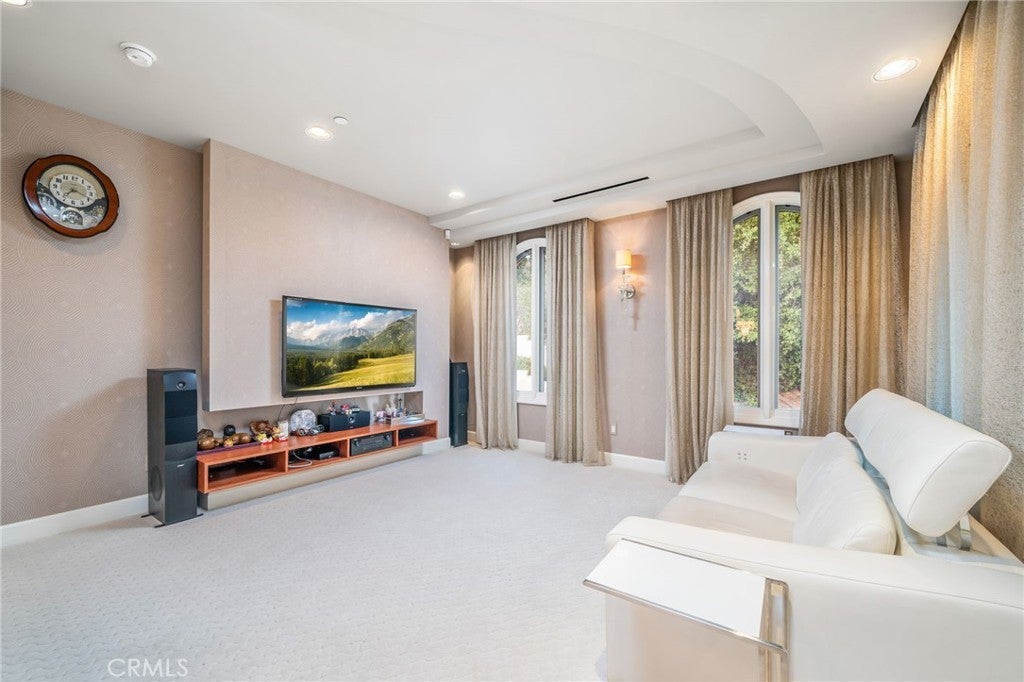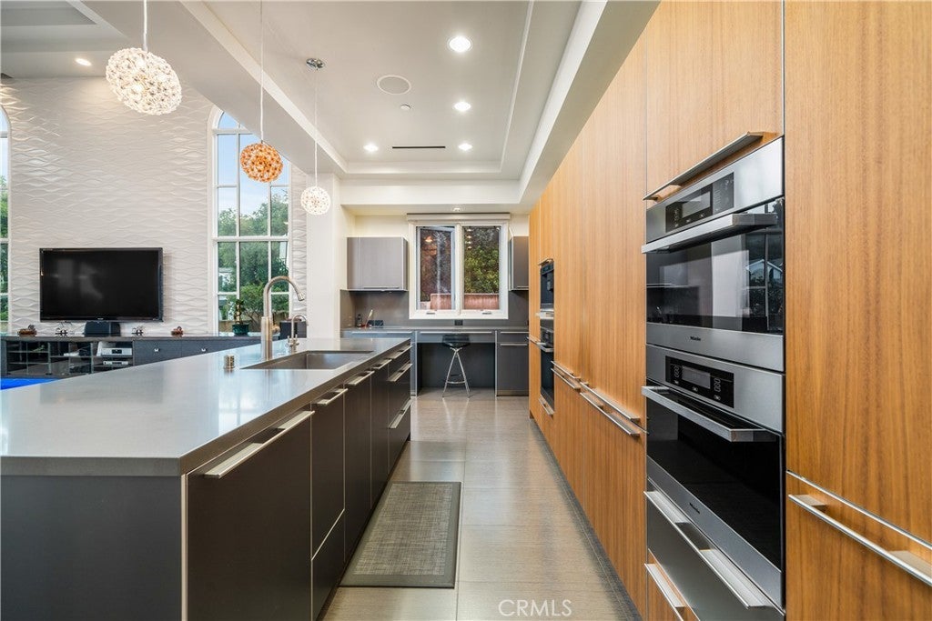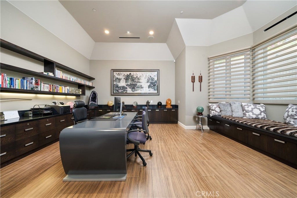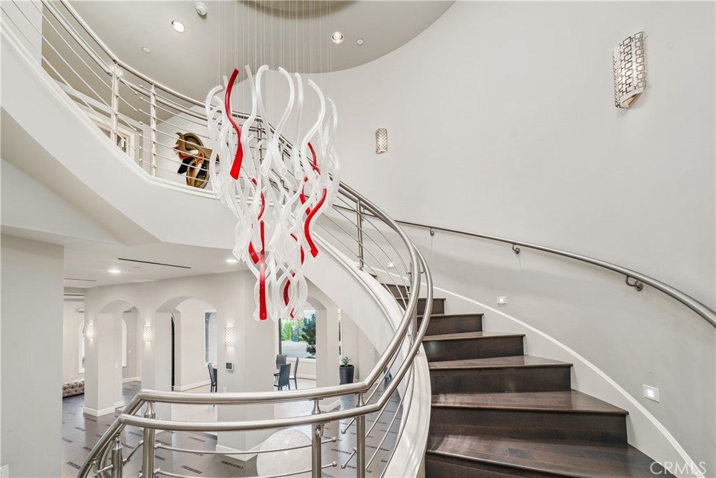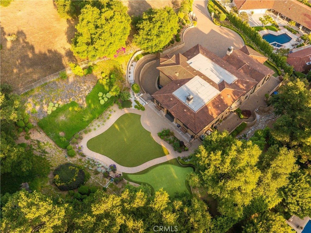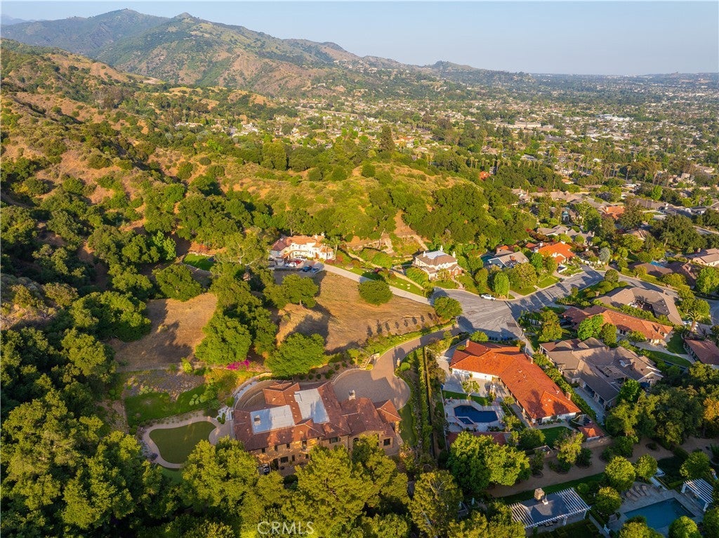 Experience the height of luxury and privacy in this breathtaking custom estate nestled in the foothills of North Glendora. Built in 2012 and situated behind private gates on a spacious one-acre lot, this one-of-a-kind residence offers an extraordinary blend of elegance, comfort, and cutting-edge smart technology, all set against a stunning backdrop of panoramic city and mountain views. Boasting 6 bedrooms, 5.5 bathrooms, and nearly 6,800 square feet of sophisticated living space, every inch of this home showcases exquisite craftsmanship and the finest materials. Enter through grand double iron doors into a dramatic formal entry, where a designer chandelier and gleaming finishes set the tone. The heart of the home is the expansive great room featuring high ceilings, a custom fireplace, wet bar, and French doors that open to a serene-covered patio. The adjacent state-of-the-art kitchen is a chef’s dream, complete with a Miele appliance suite, Bulthaup cabinetry, a central island, and a fully equipped wok kitchen with a built-in fryer, super burner, and Viking hood. Retreat to the luxurious primary suite with a private sitting area, balcony overlooking the city, spa-inspired bathroom with a steam shower, air jet tub, and dual vanities. Additional highlights include a private office, game/theater room with wet bar and fireplace, and a spacious playroom. Modern convenience meets timeless elegance with a full home automation system, integrated sound throughout, custom window coverings, and even a commercial-grade elevator. The attached six-car garage (approx. 1,400 SF) provides ample space for vehicles and storage. Outside, the park-like grounds offer a peaceful escape with mature oak trees, fruit trees, a putting green, and plenty of space to relax or entertain. Truly a one-of-a-kind property in one of Glendora’s most prestigious neighborhoods. Designed for discerning buyers who demand the very best—this home must be seen to be fully appreciated.