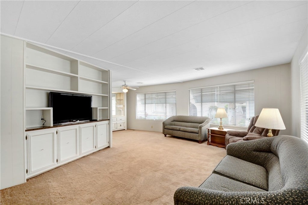 DoubleWide Beauty in Twin Oaks – Move-In Ready 2 Bed / 2 Bath Home in 55+ Community! Welcome to this bright and charming home located in the sought-after Twin Oaks Senior Community— offering comfort, convenience, and a vibrant lifestyle! This 2-bed, 2-bath home is full of thoughtful upgrades...including new interior paint throughout, New ceiling fans and a brand-new electrical panel for peace of mind. Enter through the formal foyer into a spacious living room with plush carpeting and a built-in entertainment unit. The dining area features a classic built-in china cabinet, perfect for displaying your treasured pieces. The kitchen is light and bright, equipped with a gas cooktop, wall oven with microwave, dishwasher, stainless steel sink, pantry, and plenty of cabinet space. A built-in cutting board and breakfast bar add extra functionality and charm. Adjacent to the kitchen, the family room offers easy-care laminate flooring and a relaxed atmosphere for daily living. The first bedroom includes sliding doors that open to a versatile enclosed bonus room—ideal for a home office, craft space, exercise area, or cozy reading nook, with convenient access to the front yard. The primary suite is generously sized and features dual sinks, a large soaking tub, and a separate walk-in shower for comfort and ease. Additional highlights include a laundry room and an extended carport that fits up to four small vehicles. Enjoy your morning coffee on the large covered front porch or entertain on the rear patio with built-in planters—and your very own fruit-bearing Navel orange tree! Just steps from the clubhouse, you’ll enjoy access to resort-style amenities like a swimming pool, spa, gym, billiards, card room, and multi-purpose event hall. Twin Oaks is ideally located near shopping, dining, hospitals, freeways, and public transit. A great opportunity for low-maintenance living in a welcoming senior community! (Click on 360 Walkthrough Tour for additional photos) ** Space is on Registration – NEW Space Rent: $852.54/month**